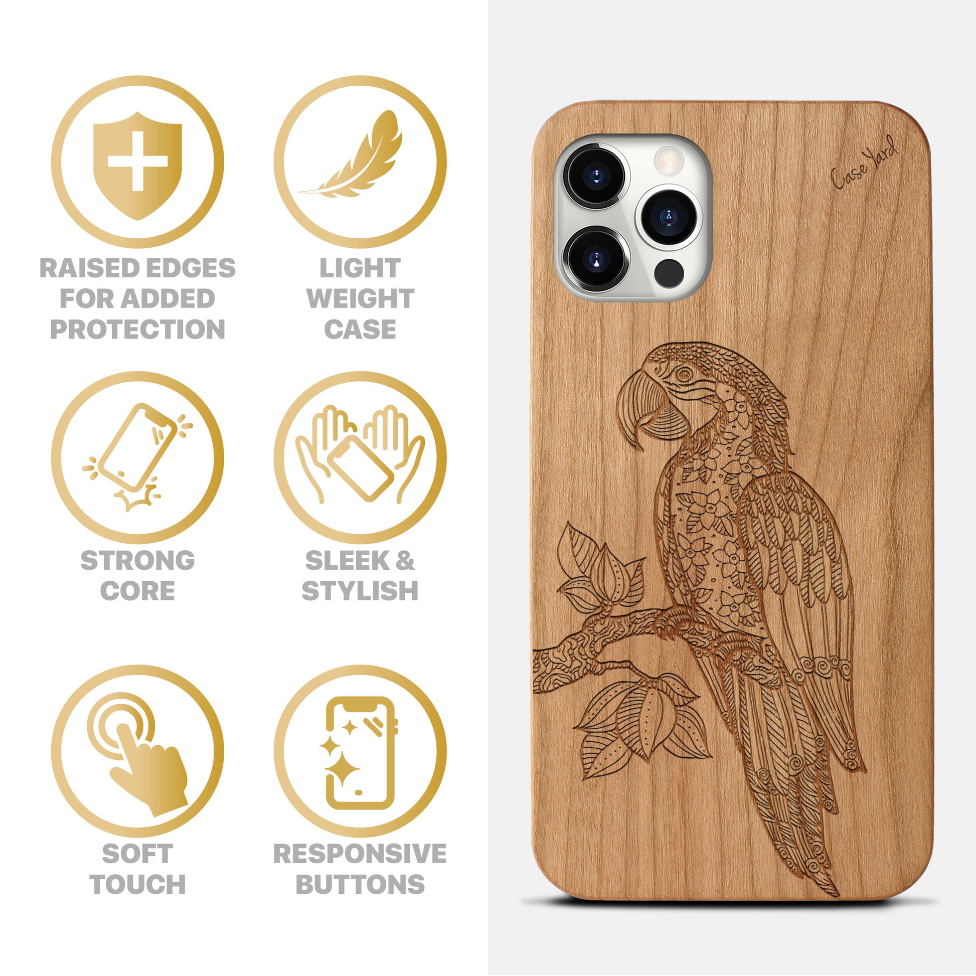 Ara Parrot Wooden Laser Engraved Phone Case for iPhone & Samsung Phones