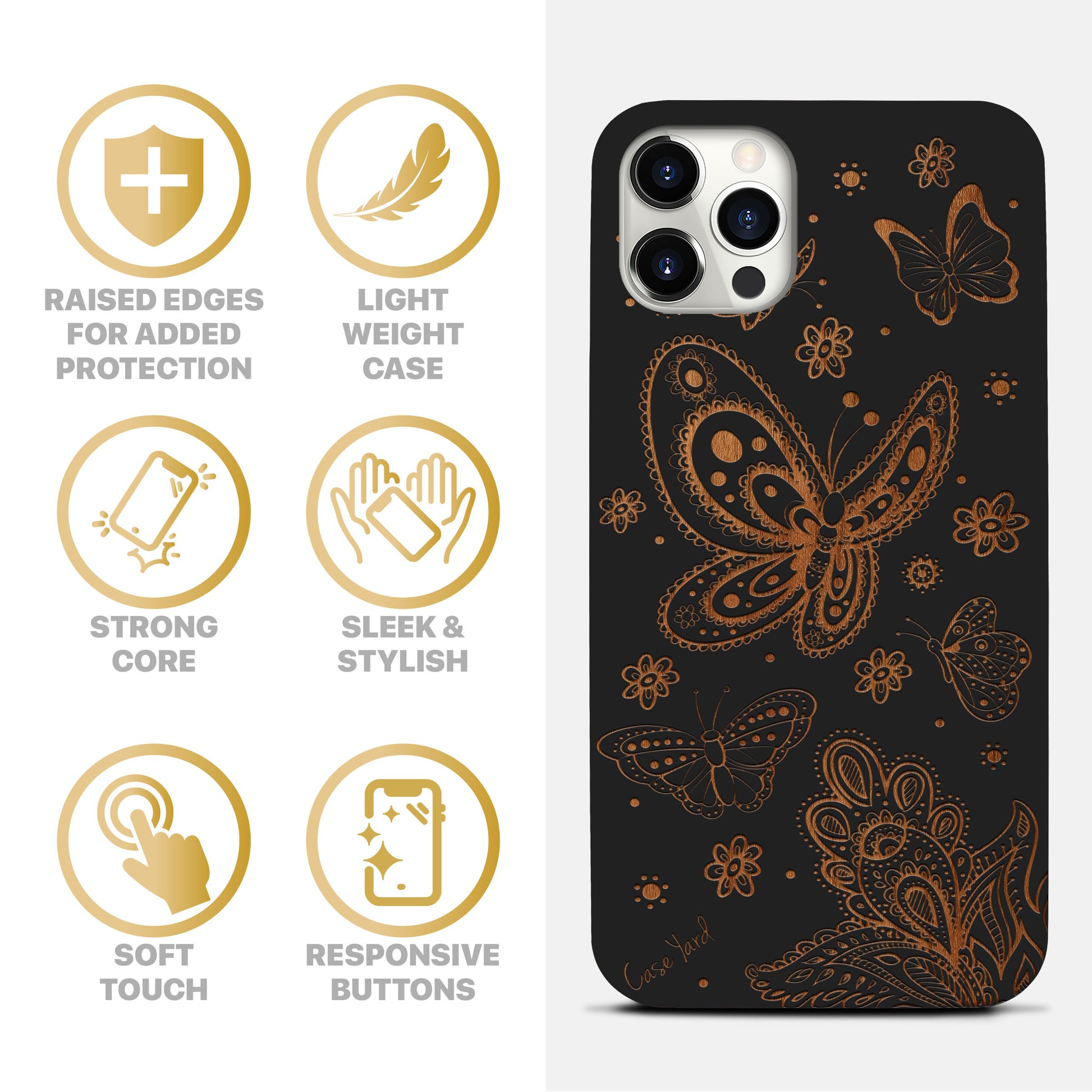 Butterflies Wooden Laser Engraved Phone Case for iPhone & Samsung Phones