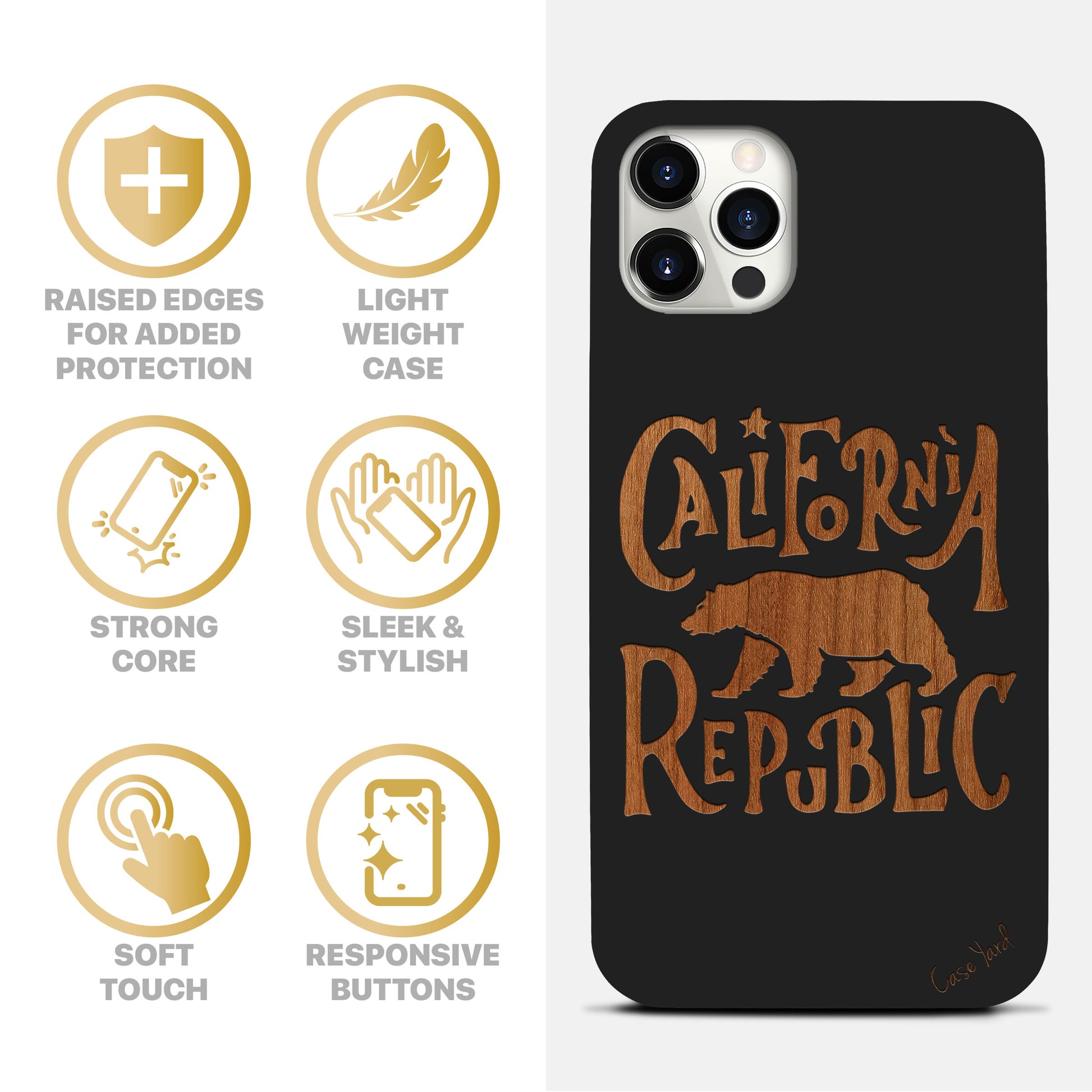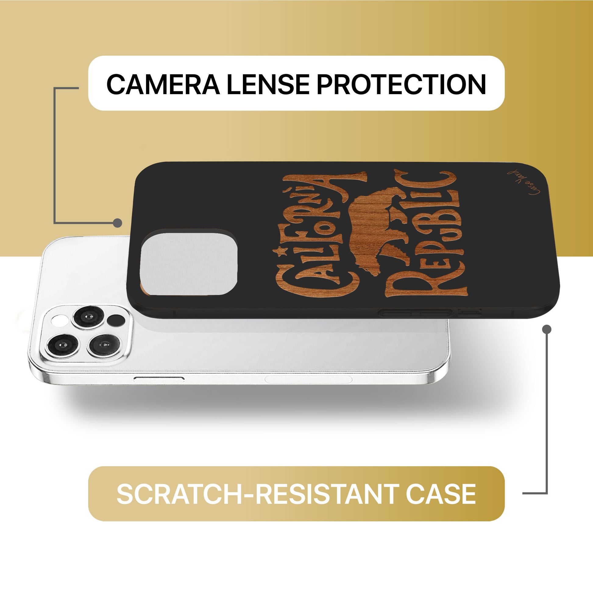 California Republic Bear Wooden Laser Engraved Phone Case for iPhone & Samsung Phones