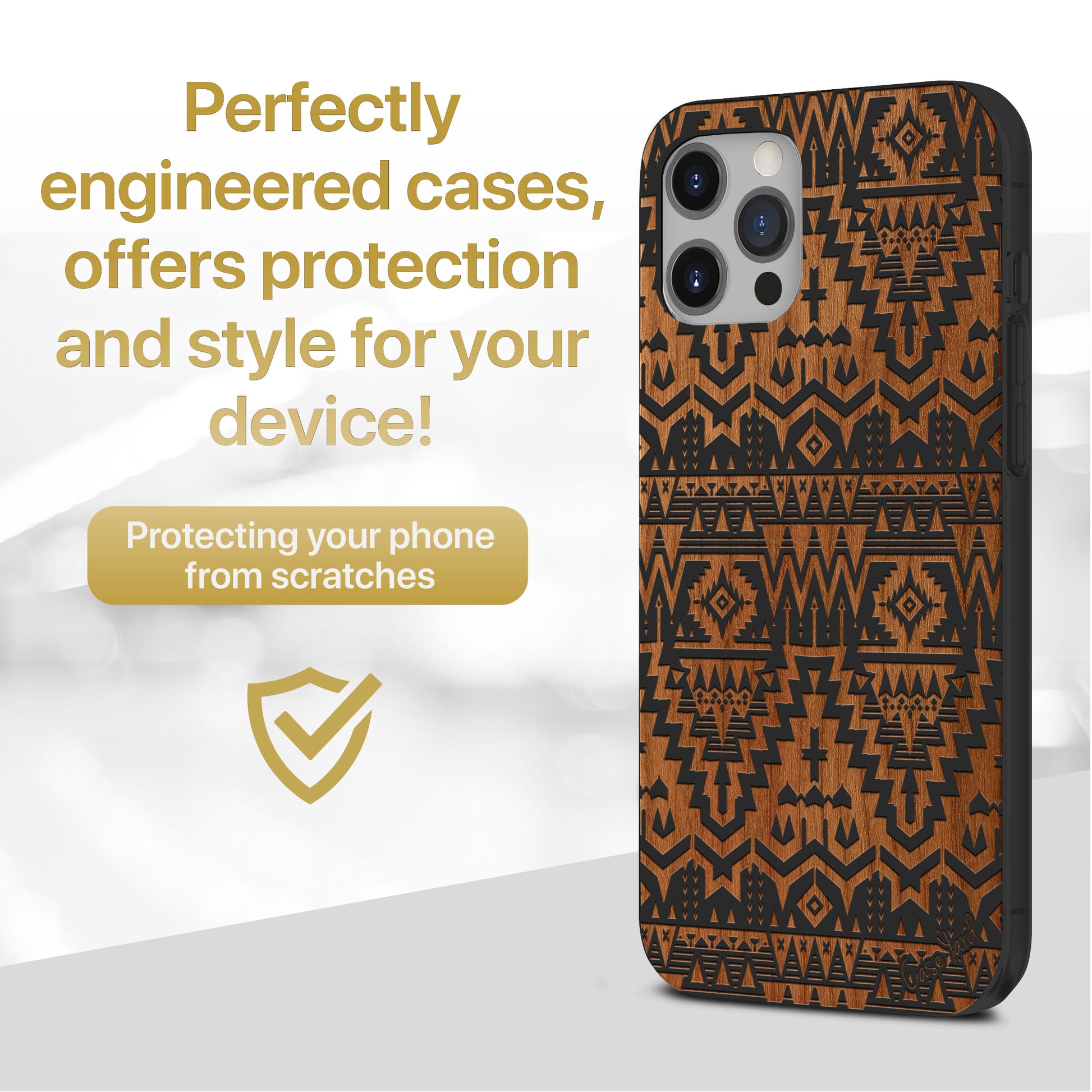 Carpet Pattern Wooden Laser Engraved Phone Case for iPhone & Samsung Phones