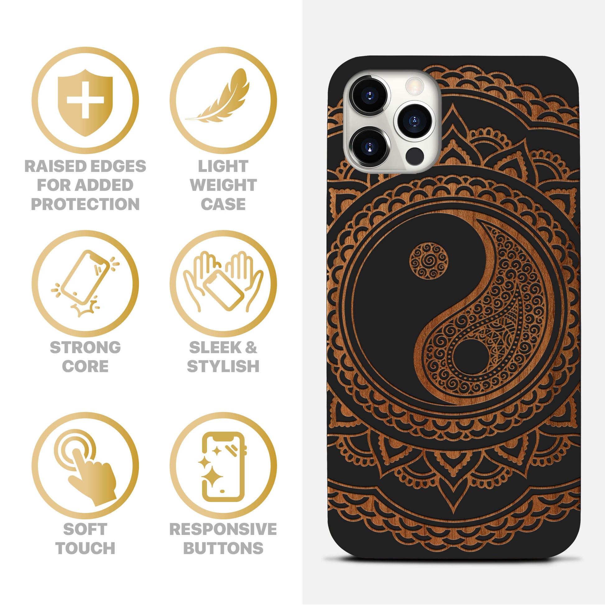 Ying Yang Mandala 2 Wooden Laser Engraved Phone Case