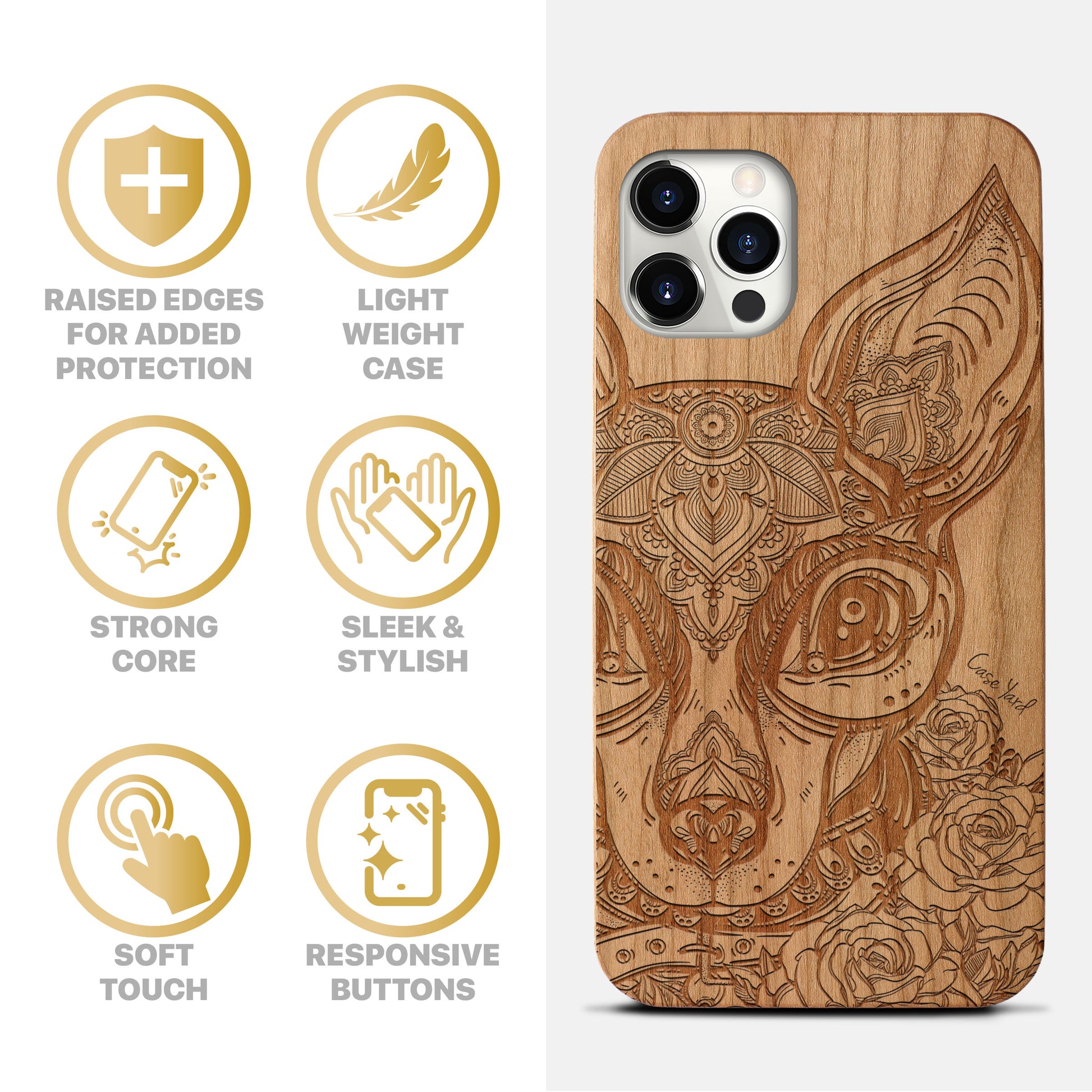 Chihuahua Wooden Laser Engraved Phone Case for iPhone & Samsung Phones