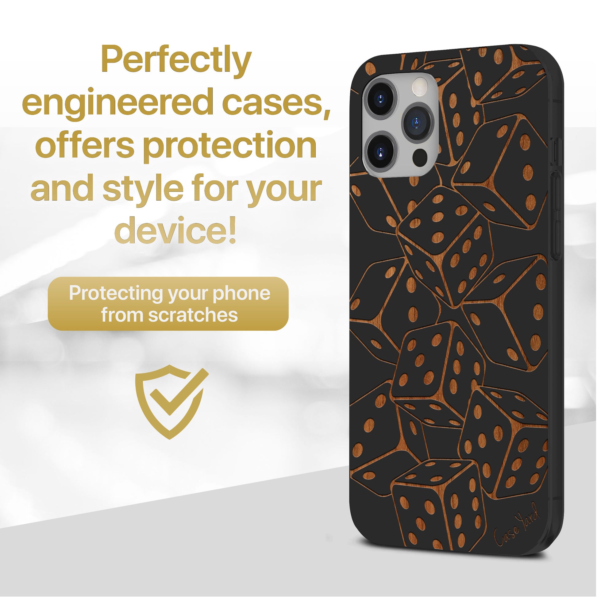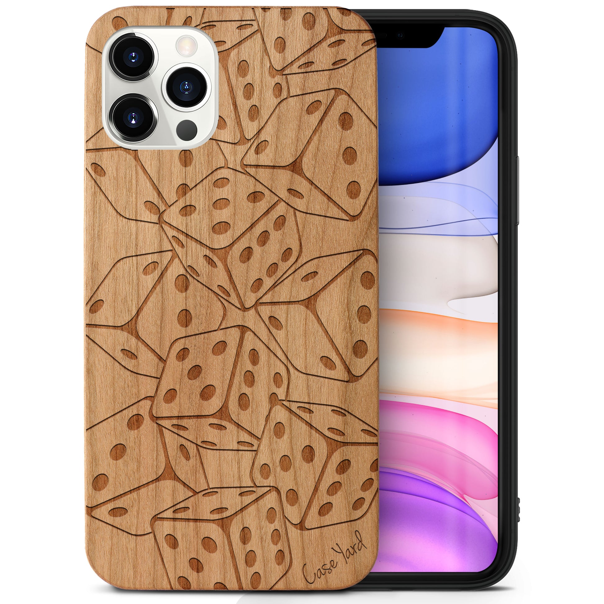 Dices Falling Wooden Laser Engraved Phone Case for iPhone & Samsung Phones