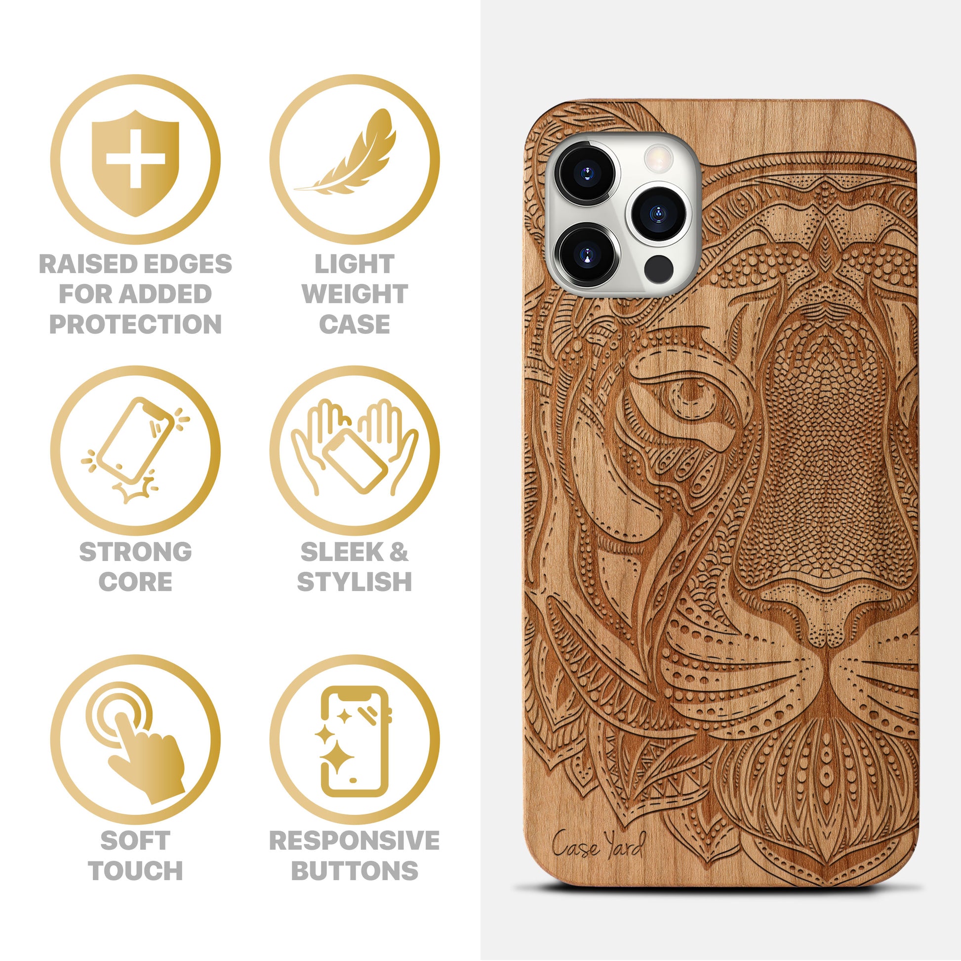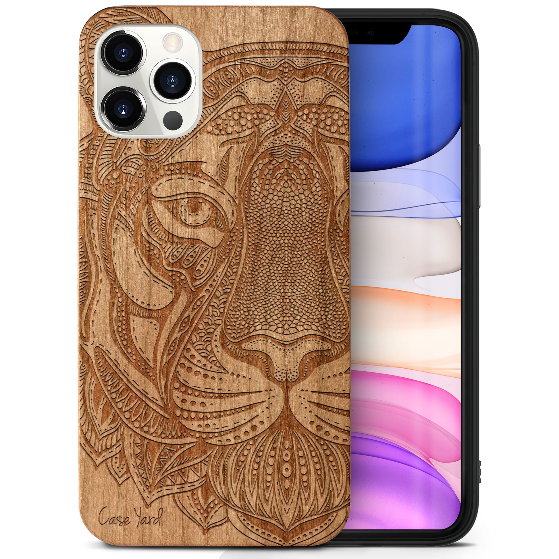 Doodle Tiger Face Wooden Laser Engraved Phone Case for iPhone