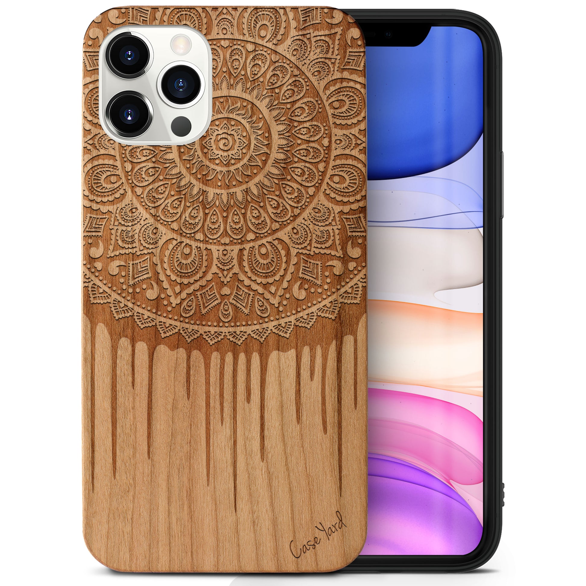 Dripping Mandala Wood Wooden Laser Engraved Phone Case for iPhone