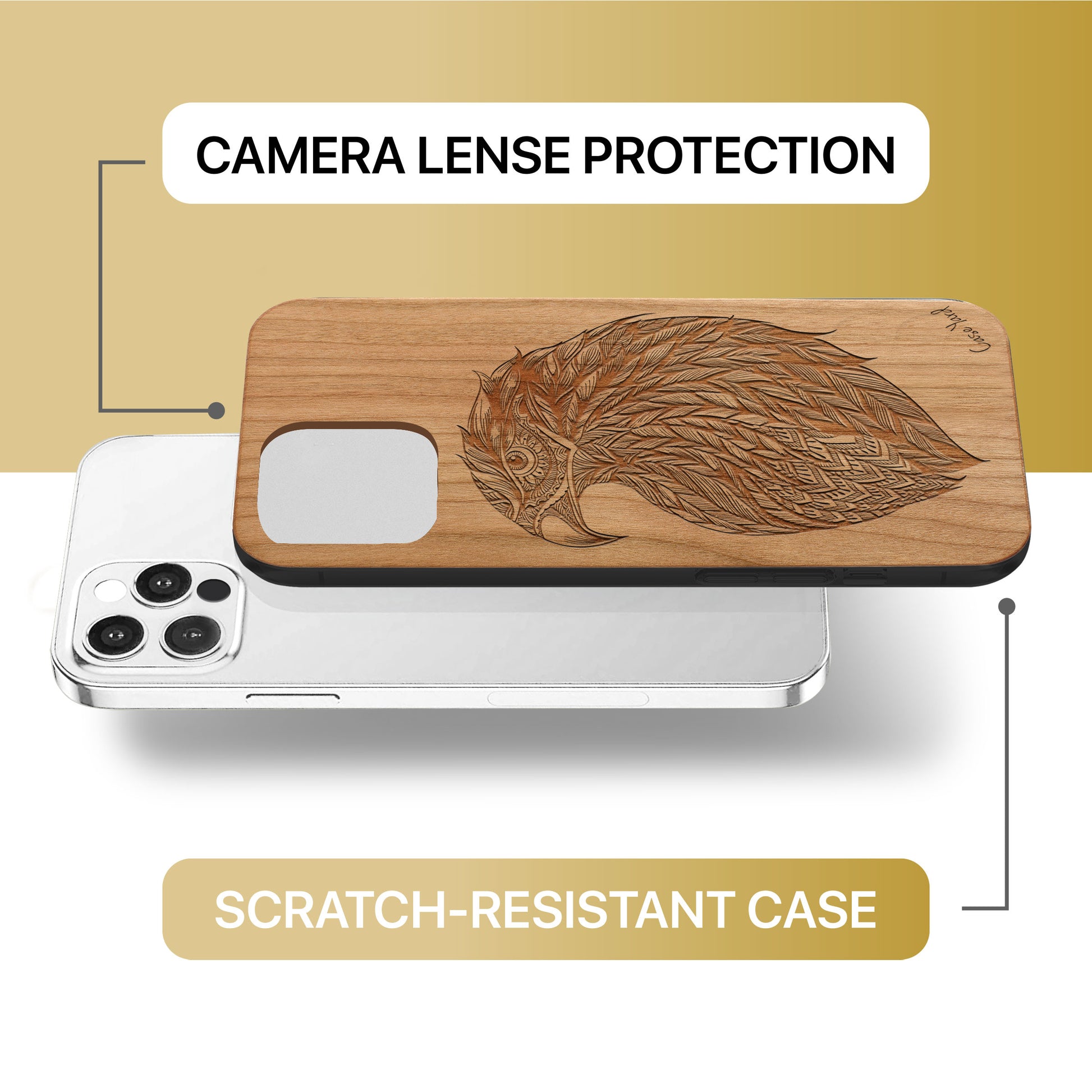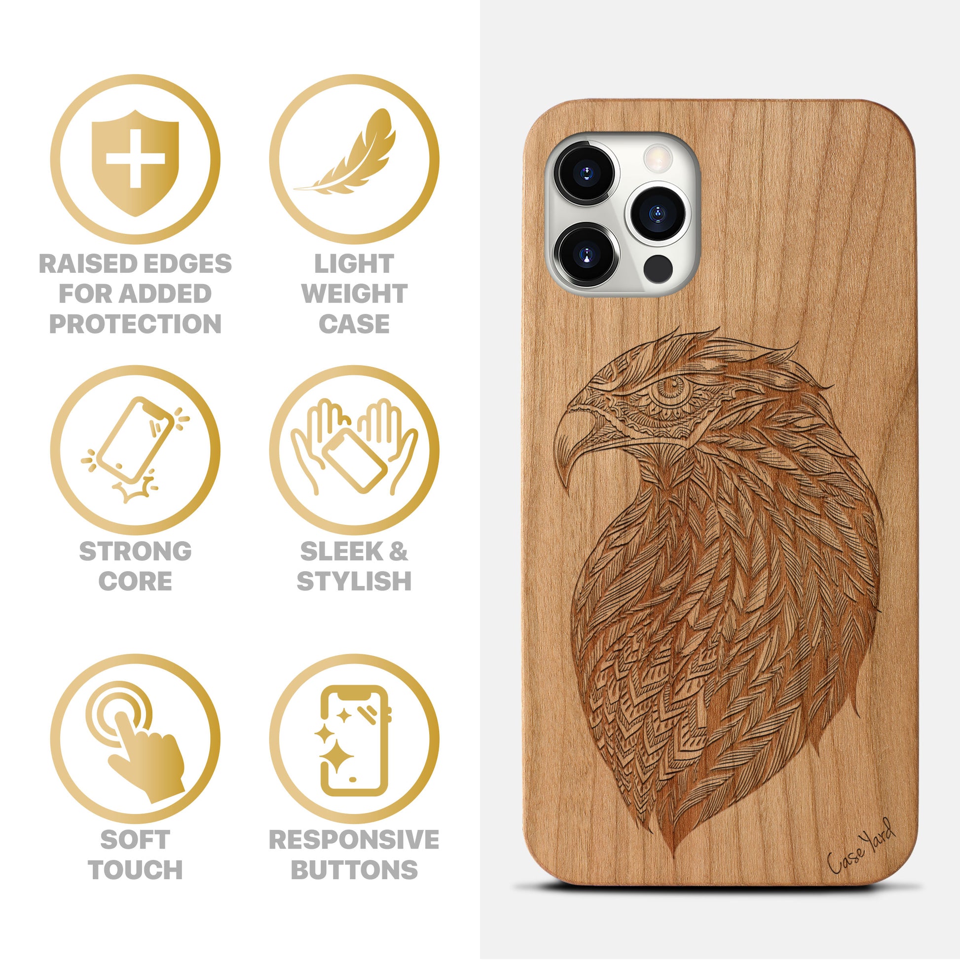 Eagle Sketch Wooden Laser Engraved Phone Case for iPhone