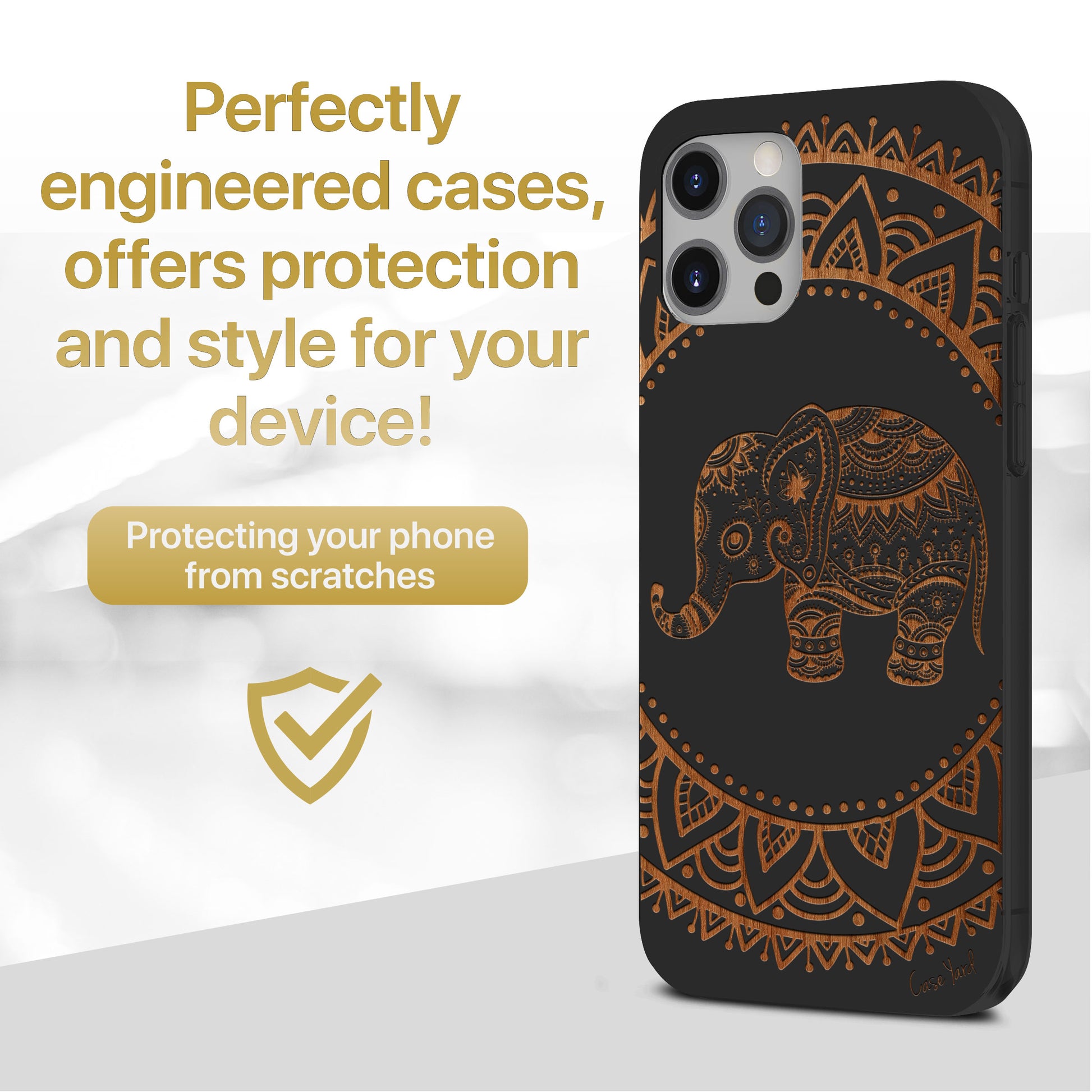 Elephant Mandala Wood Wooden Laser Engraved Phone Case for iPhone