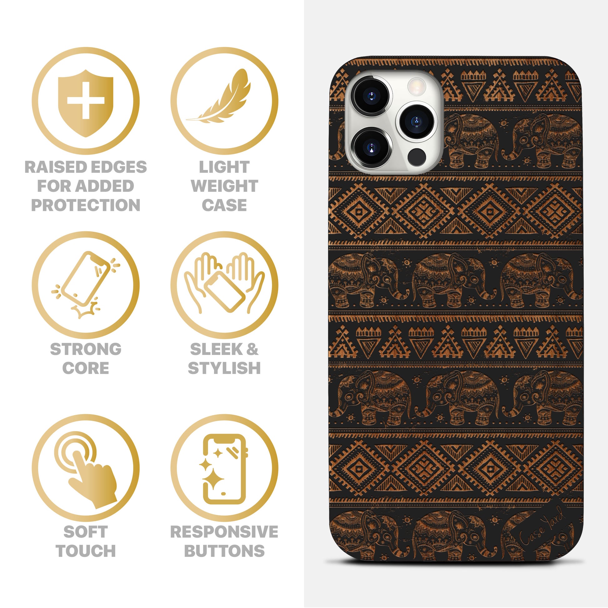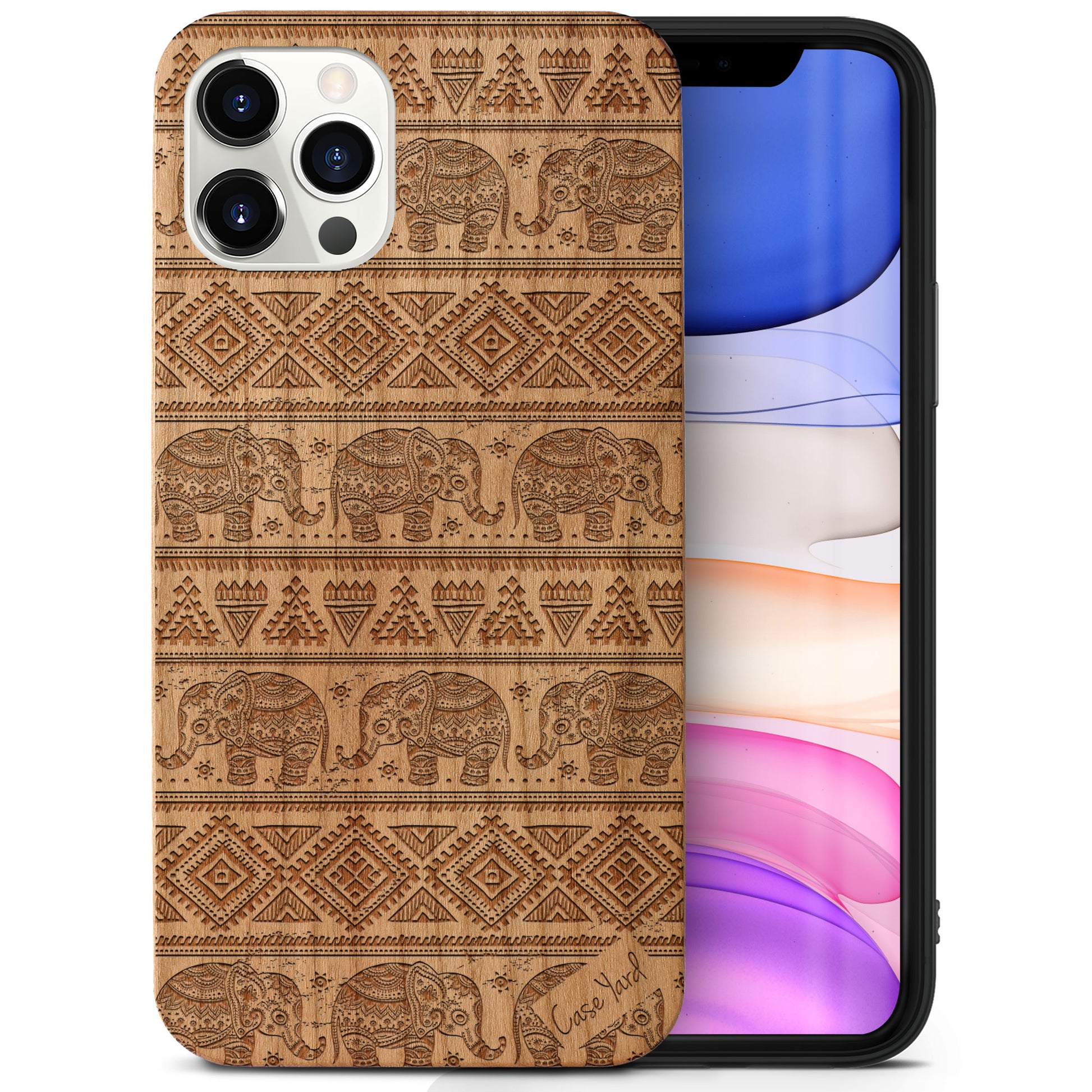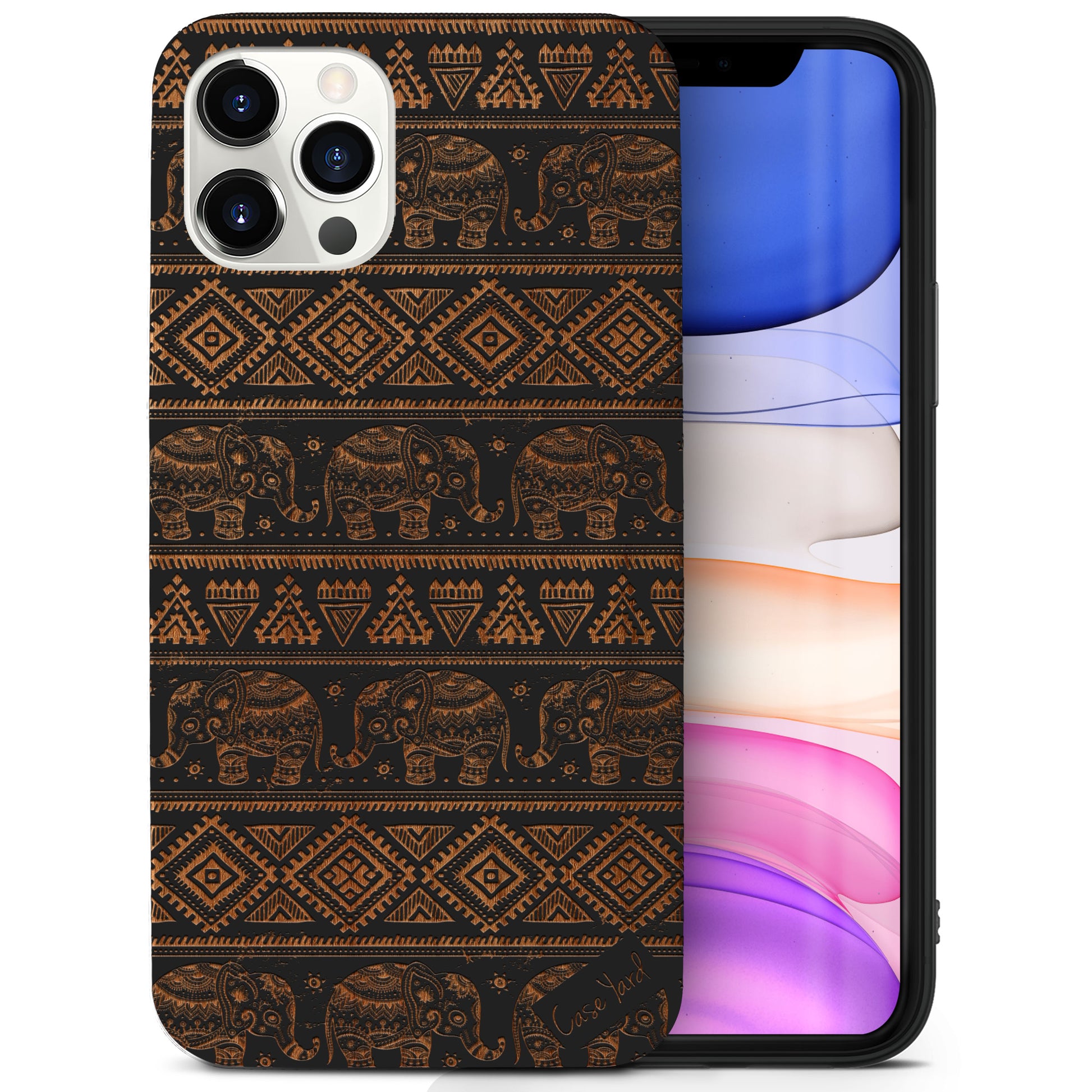 Elephant Pattern Wood Wooden Laser Engraved Phone Case