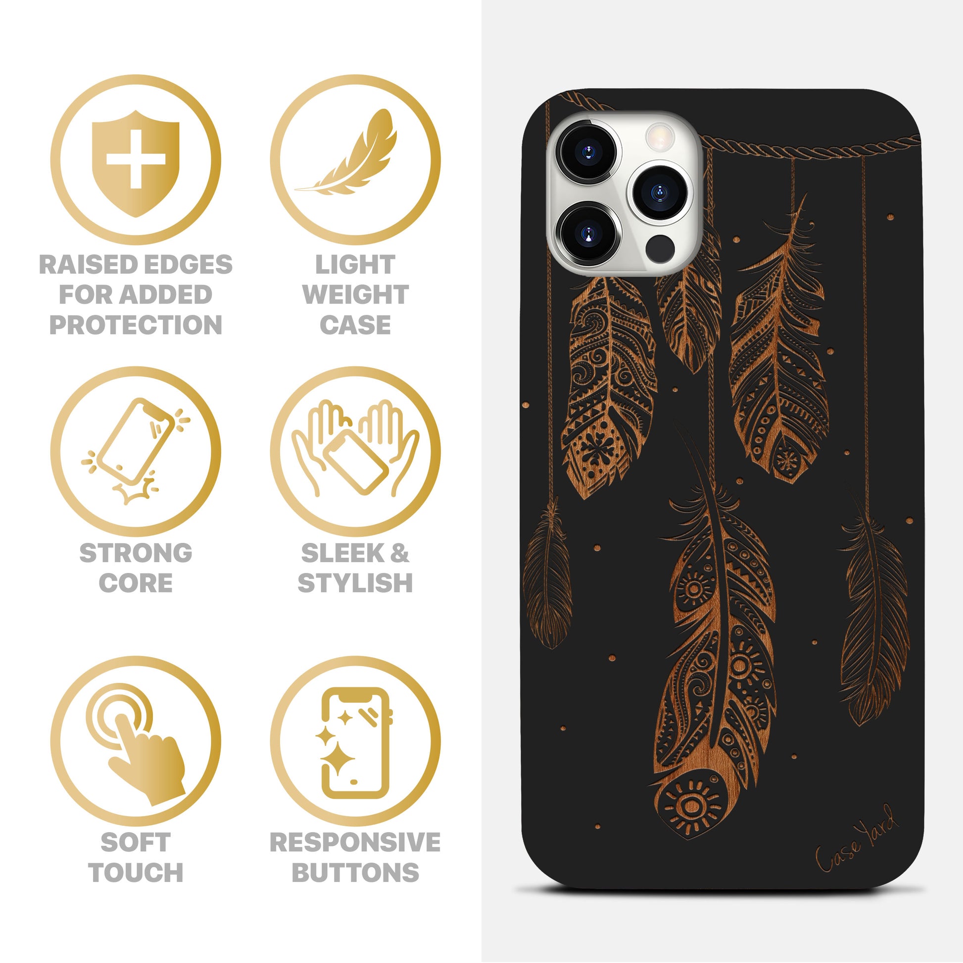 Feathers Wooden Laser Engraved Phone Case