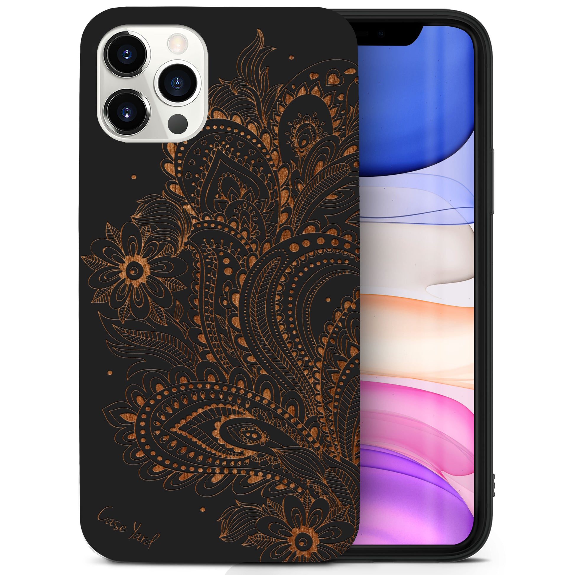 Flower Paisley Wood Wooden Laser Engraved Phone Case for iPhone