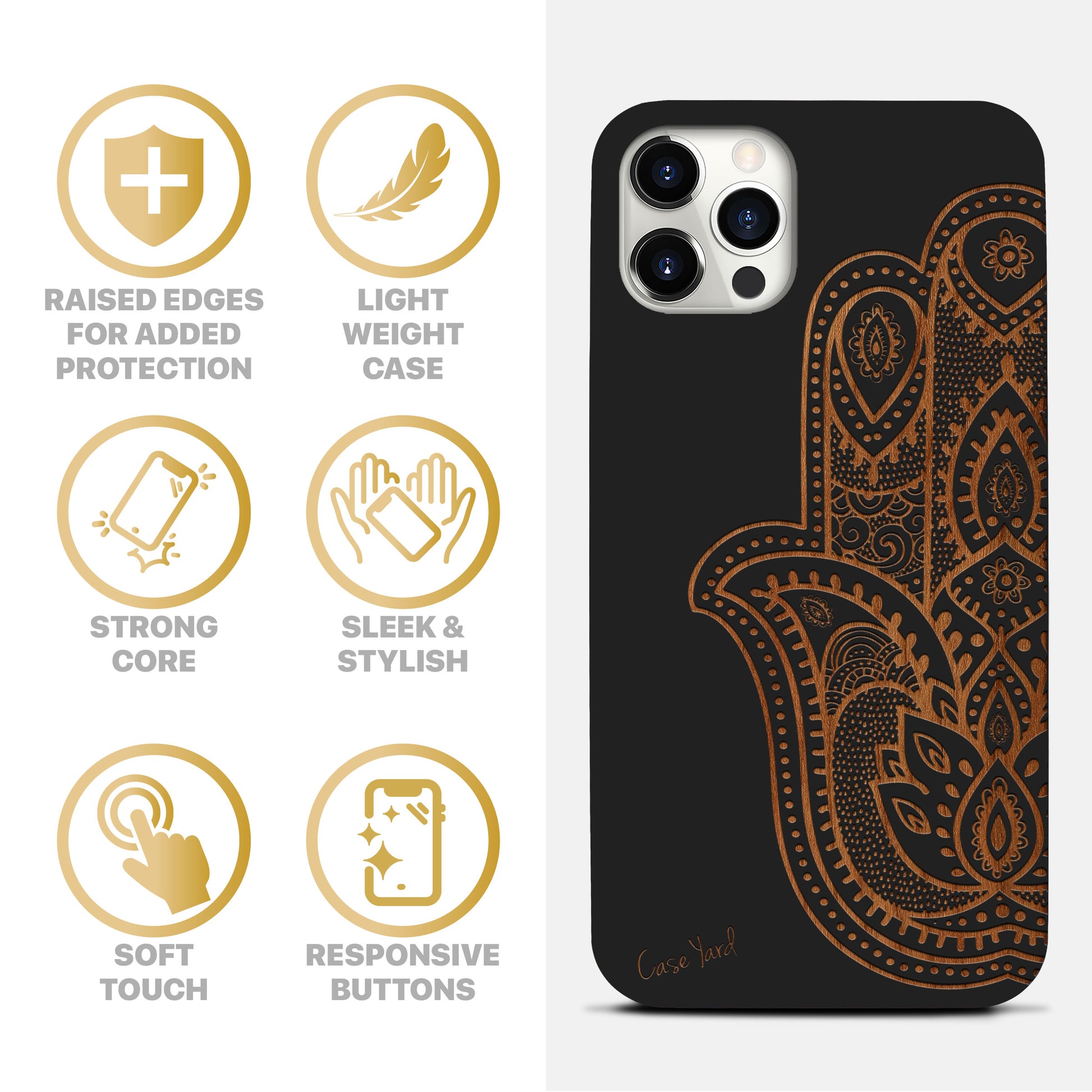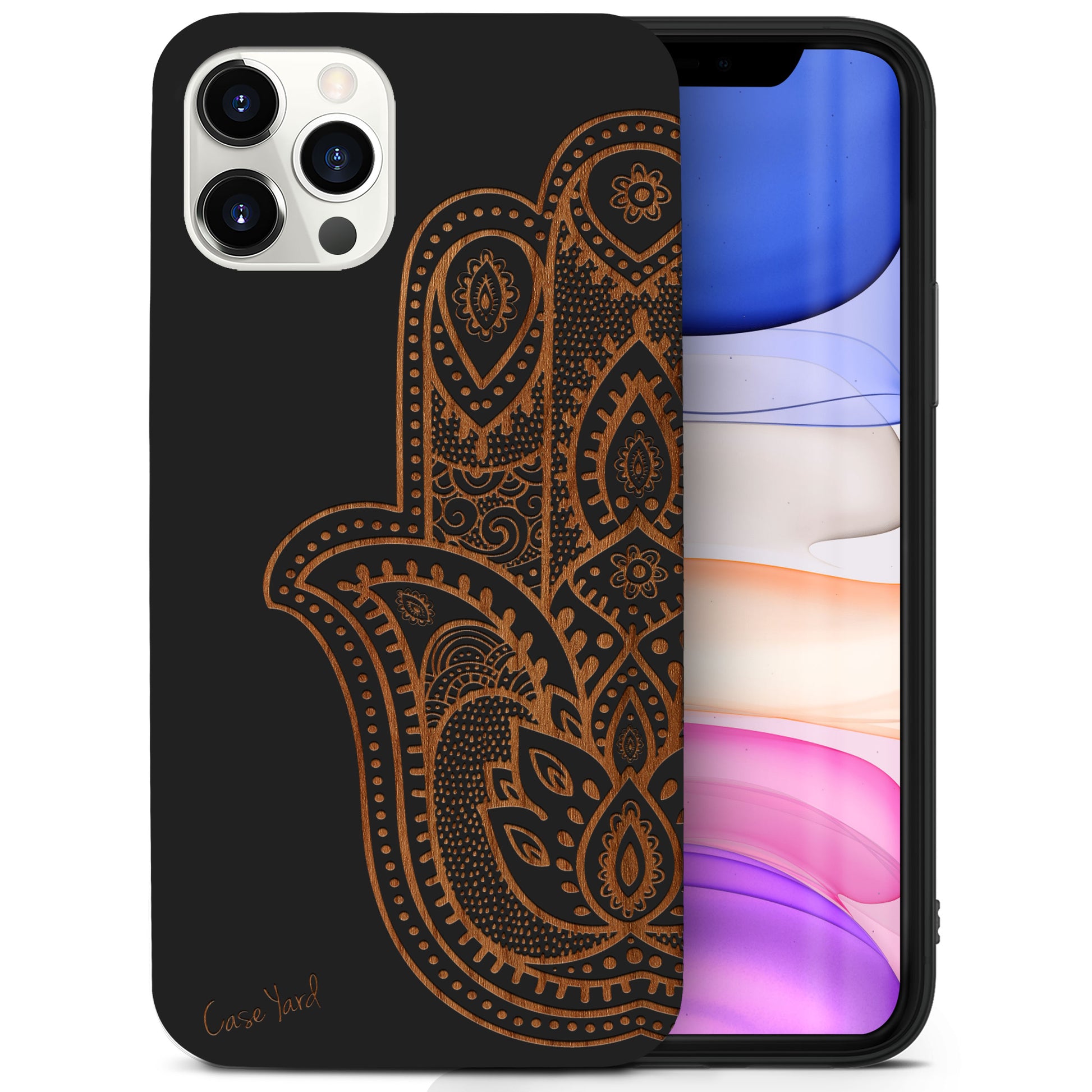 Half Hamsa Hand Wood Wooden Laser Engraved Phone Case for iPhone