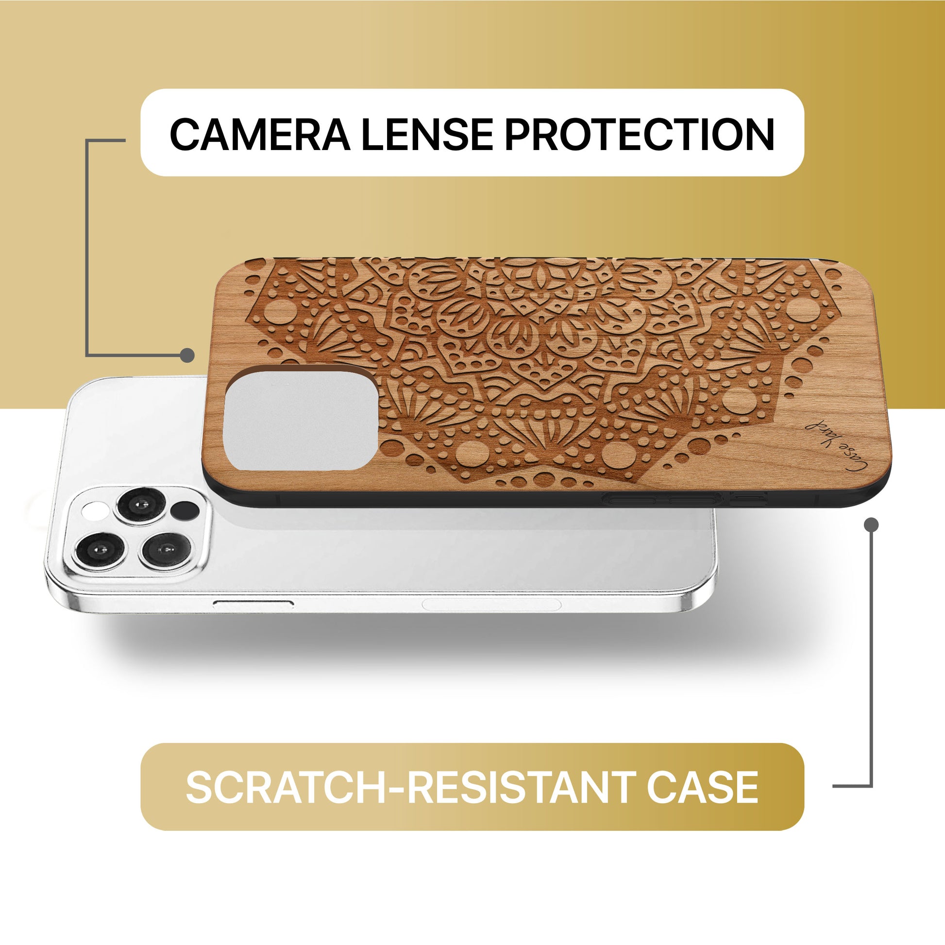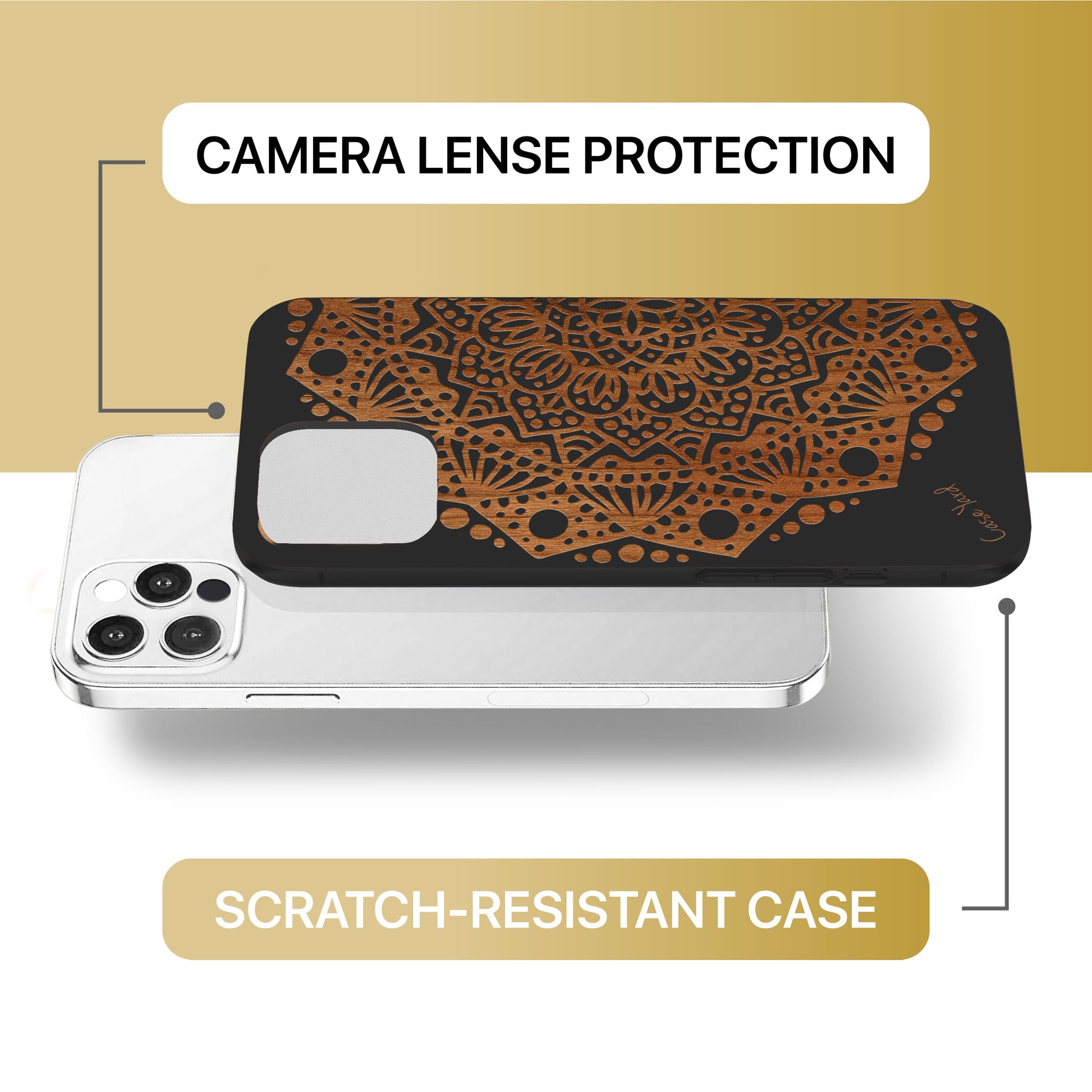 Half Mandala Wooden Laser Engraved Phone Case for iPhone