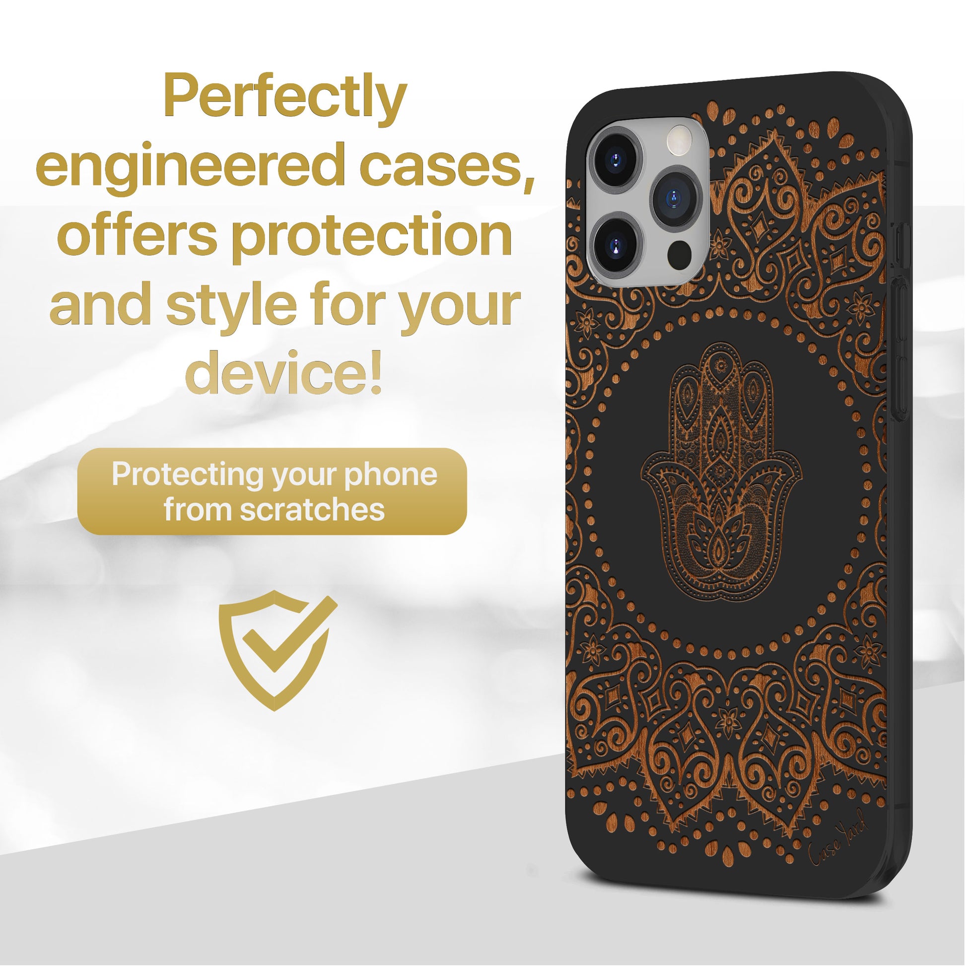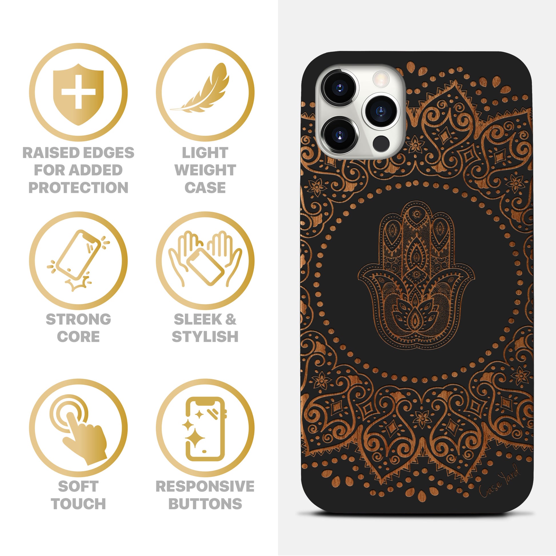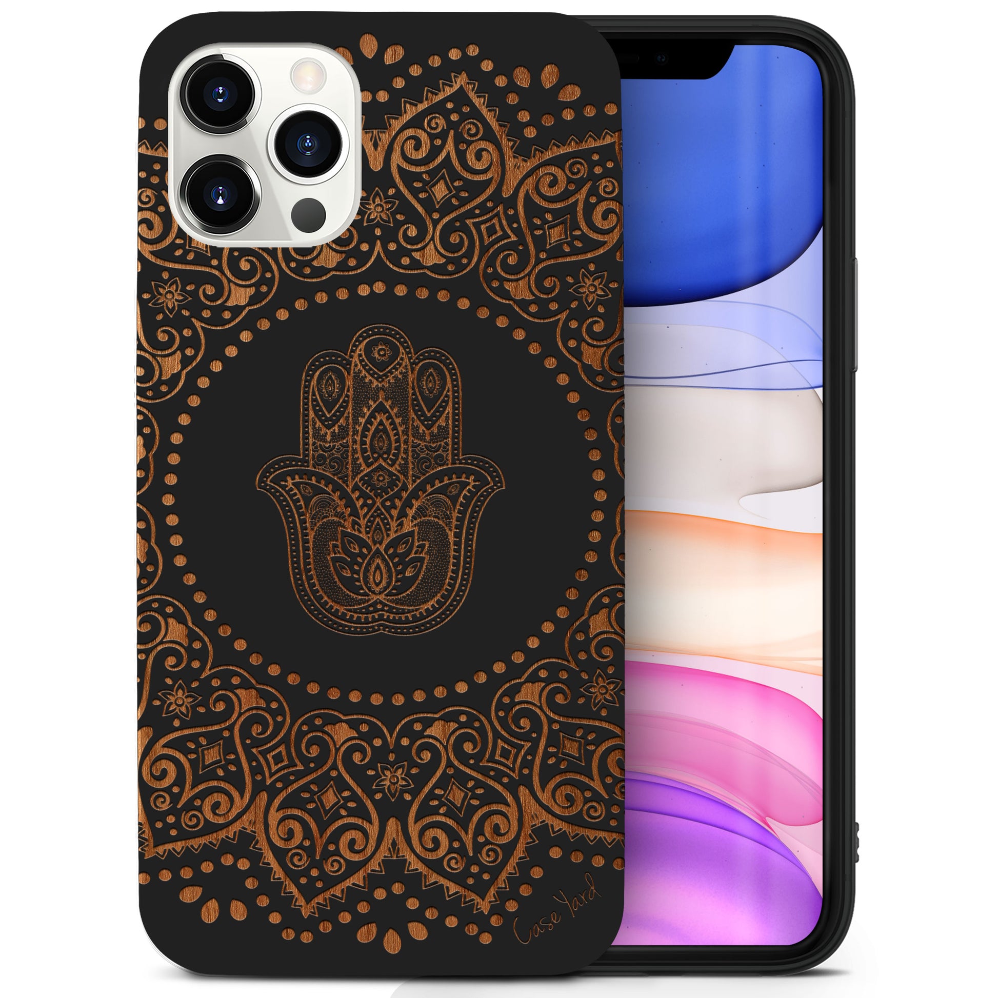 Hamsa Hand Mandala Wooden Laser Engraved Phone Case for iPhone