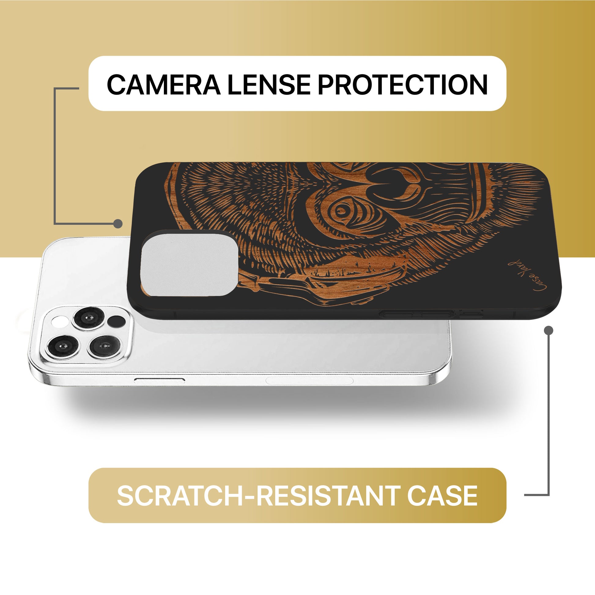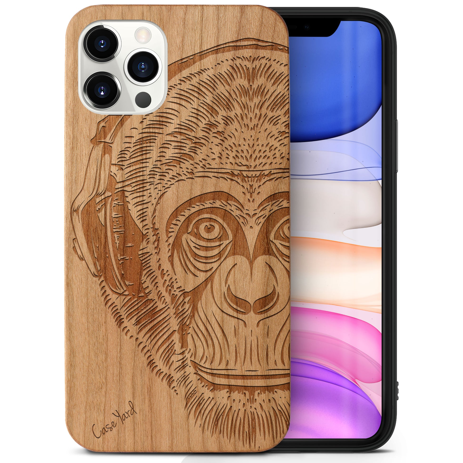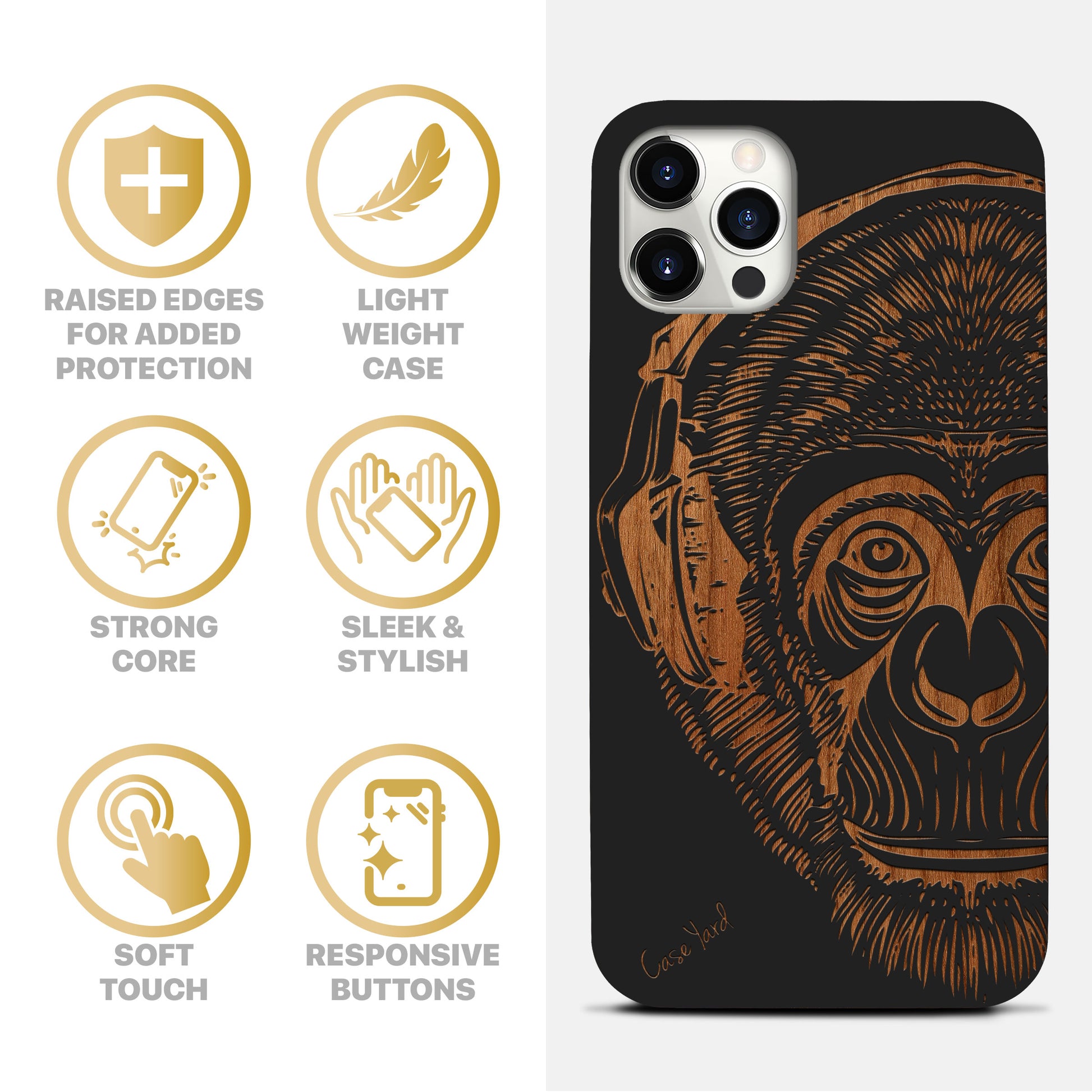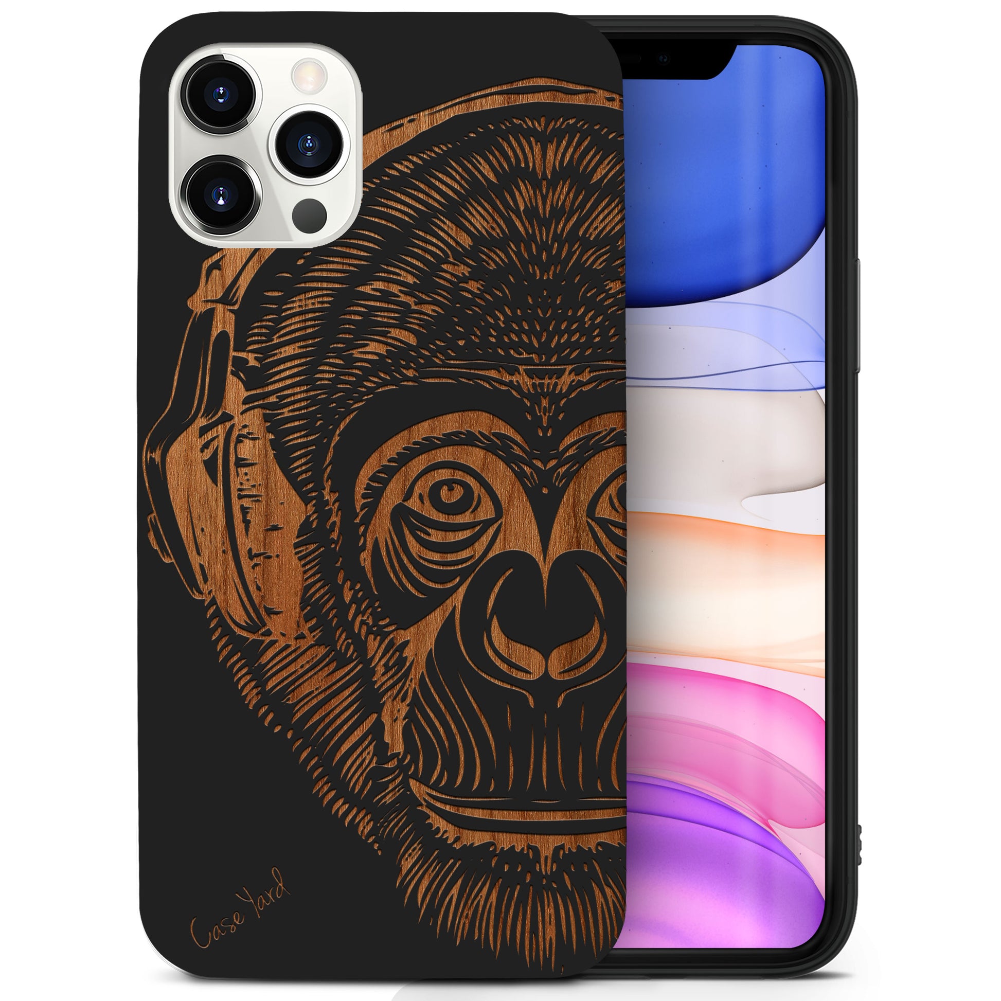 Headphone Monkey Wooden Laser Engraved Phone Case for iPhone