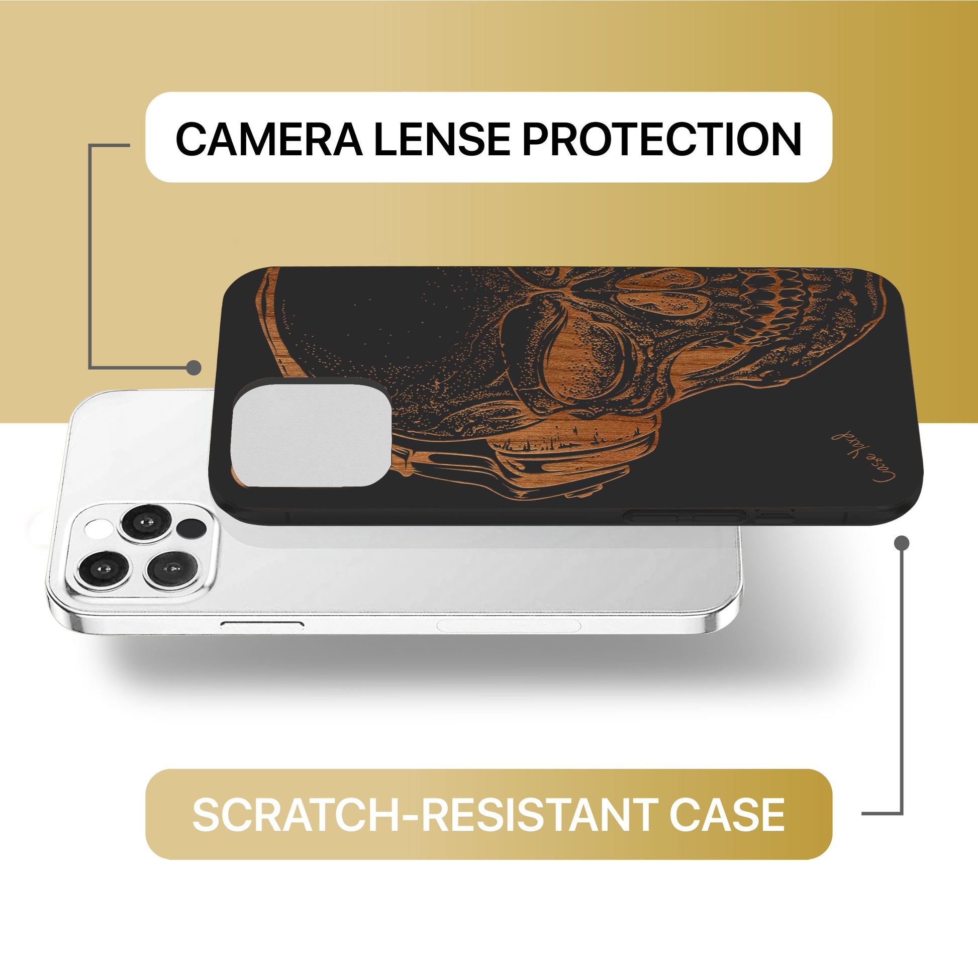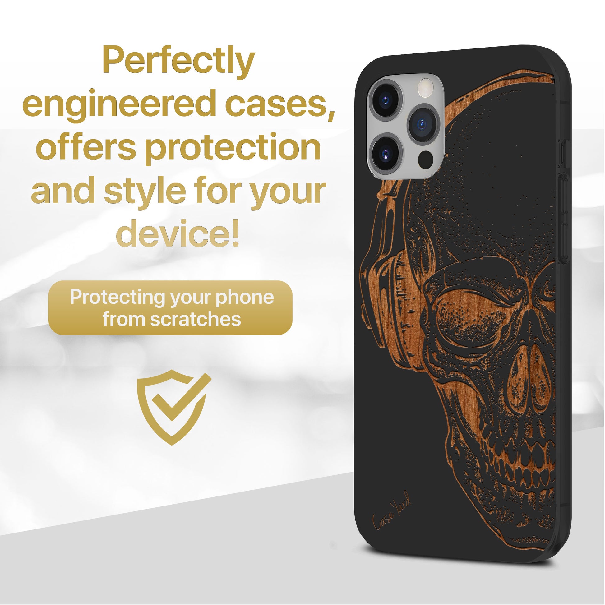 Headphone Skull Wood Wooden Laser Engraved Phone Case