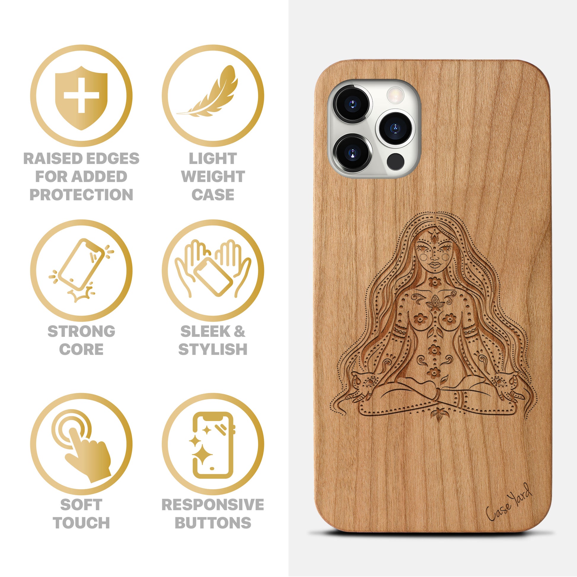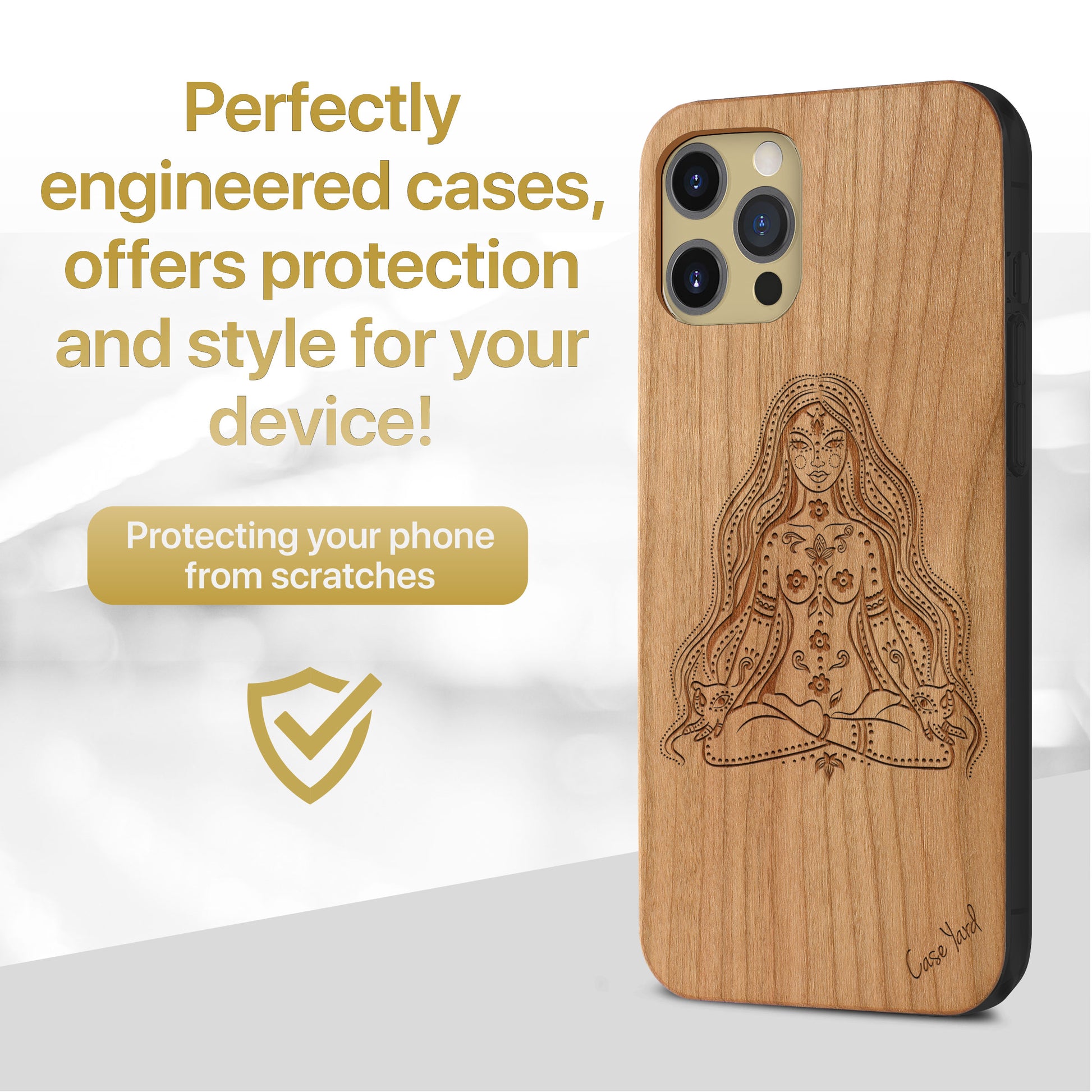 Our wood cases are made of 100% natural real cherry wood. The case housing is made of high-quality polycarbonate to offer protection and a better grip for your device. All cases are engineered to protect your device against accidental drops or knocks.