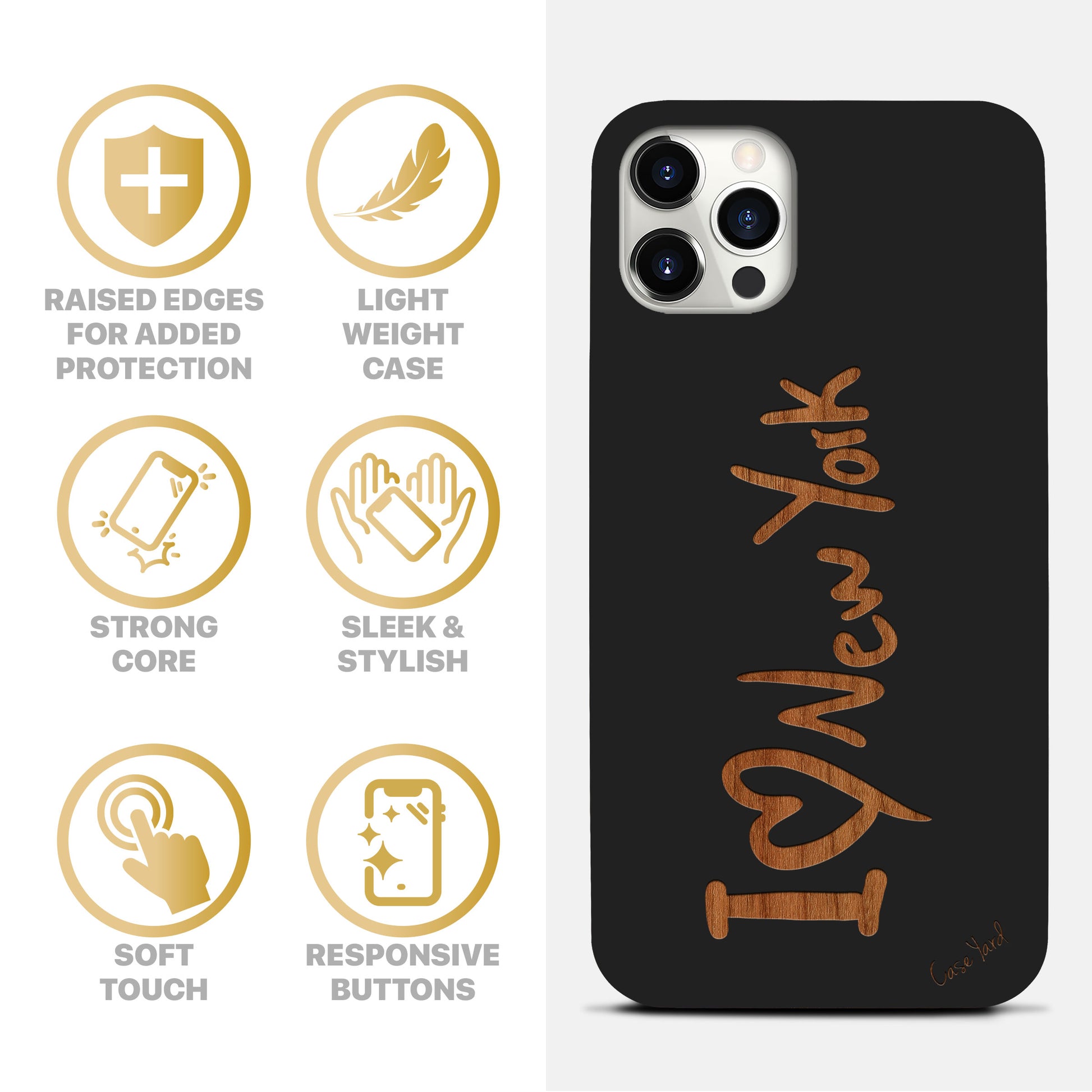 I Love NY Wooden Laser Engraved Phone Case