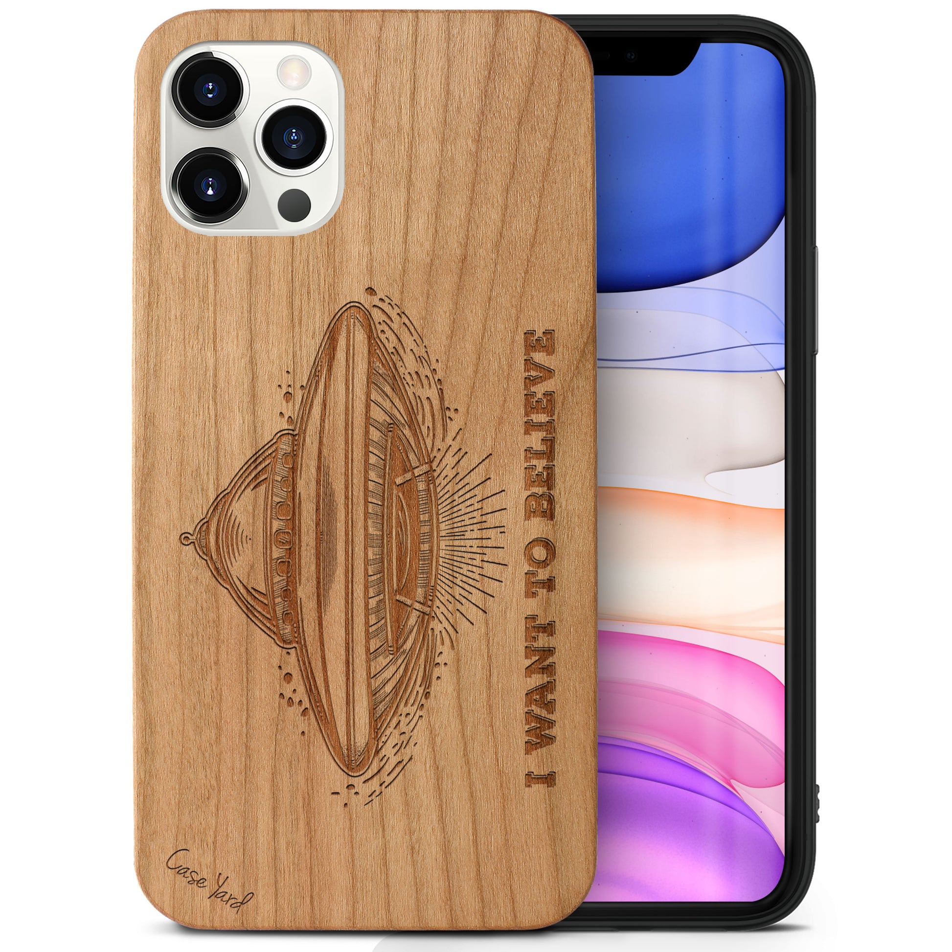 I Want to Believe Wooden Laser Engraved Phone Case for iPhone