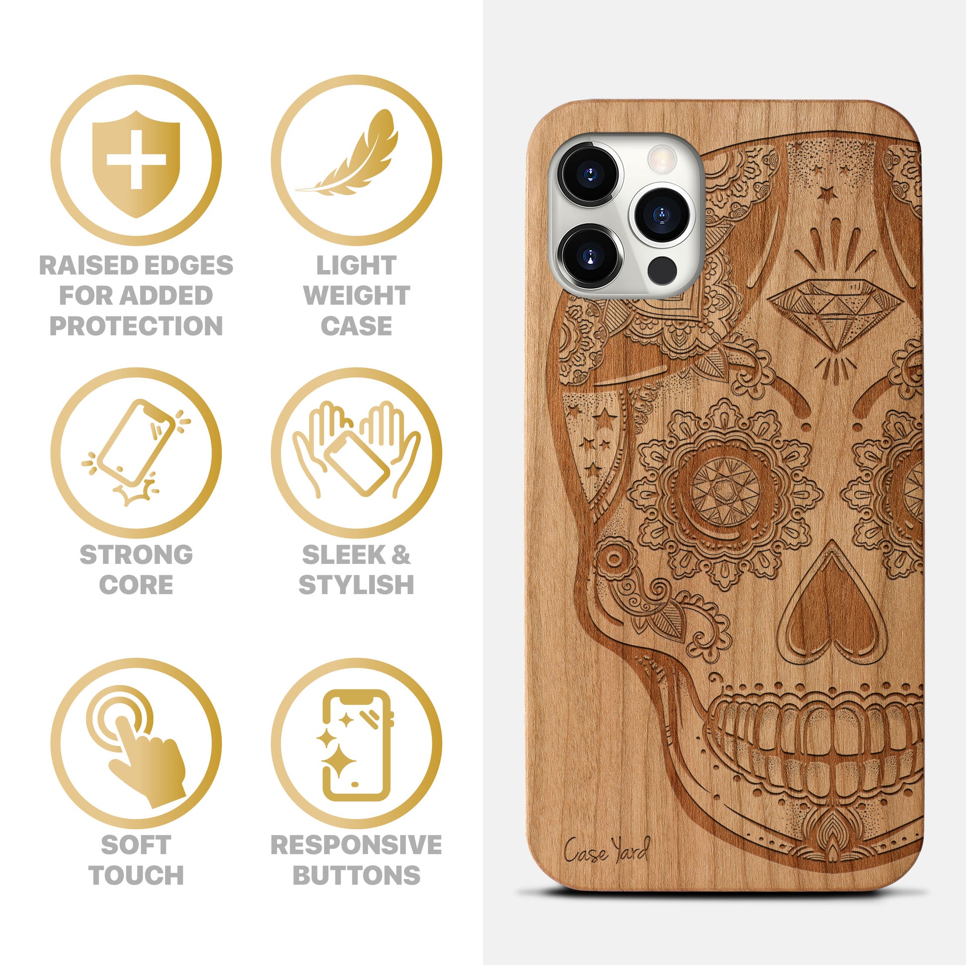 Ice Skull Wooden Laser Engraved Phone Case for iPhone