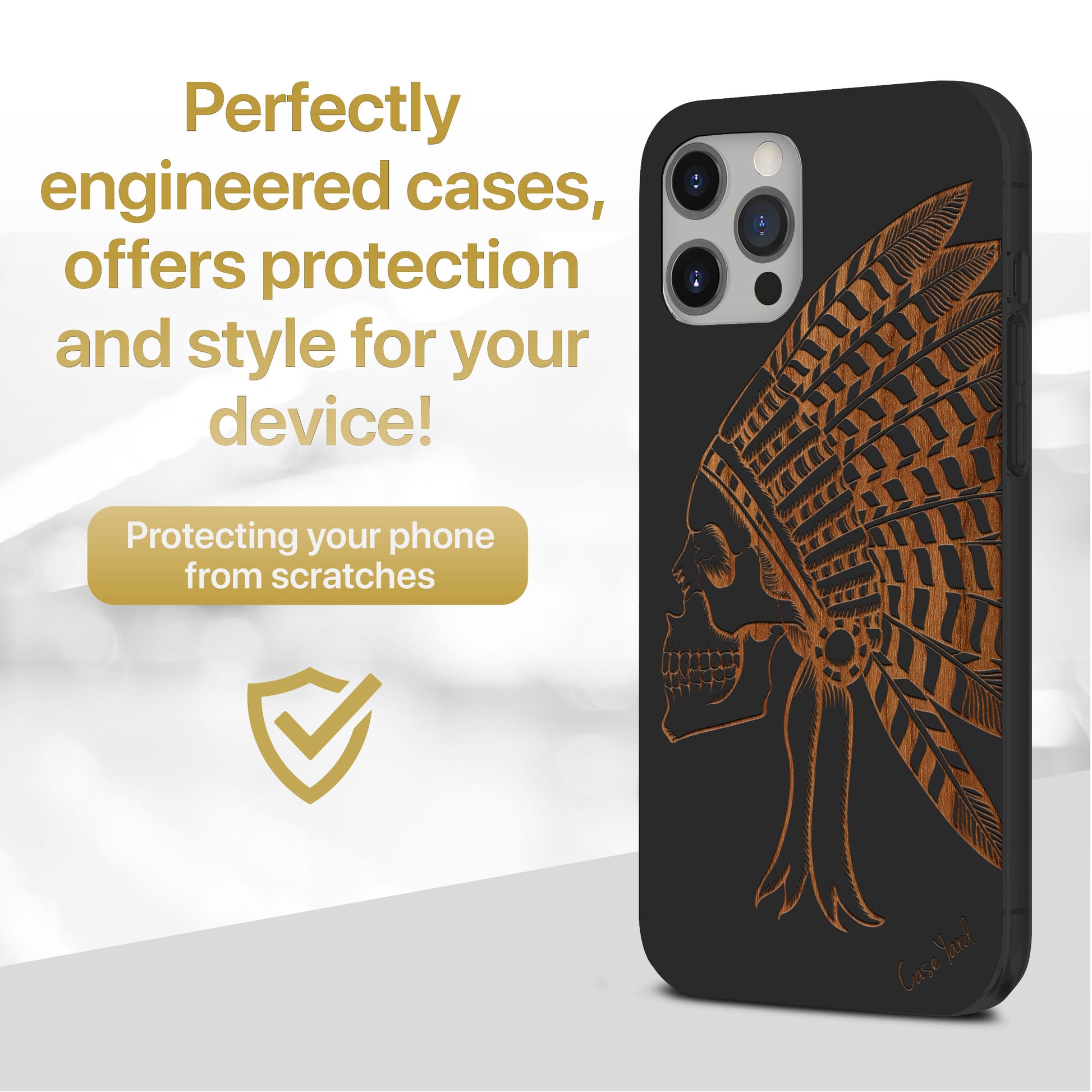 Indian Chief Skull Wood Wooden Laser Engraved Phone Case