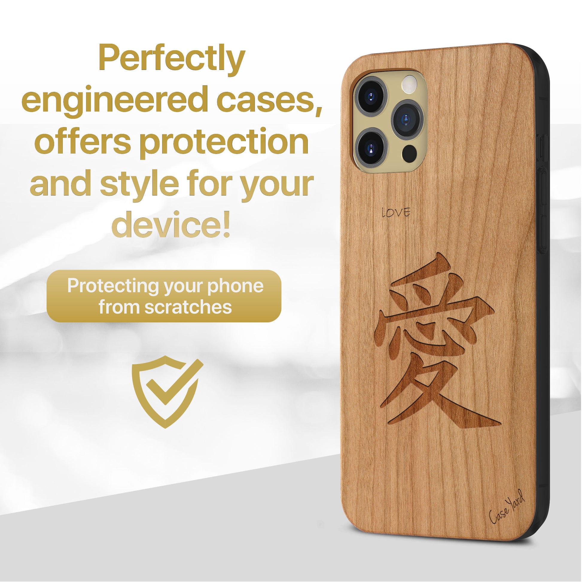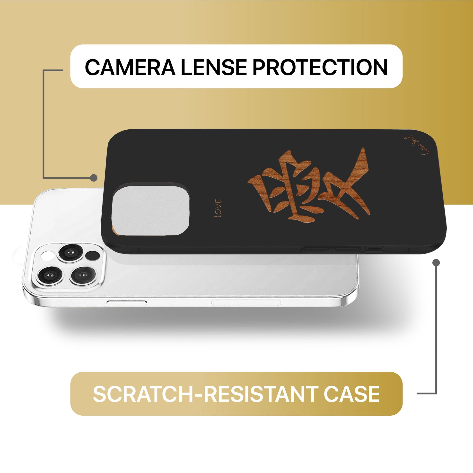 Japanese Love Wooden Laser Engraved Phone Case for iPhone