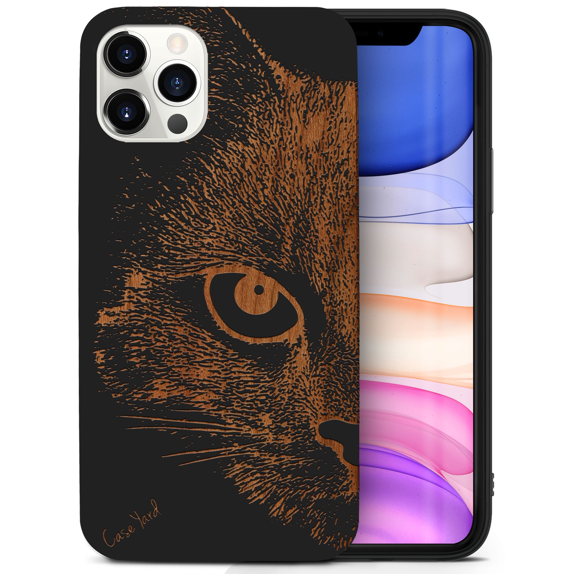 Mad Cat Wooden Laser Engraved Phone Case for iPhone