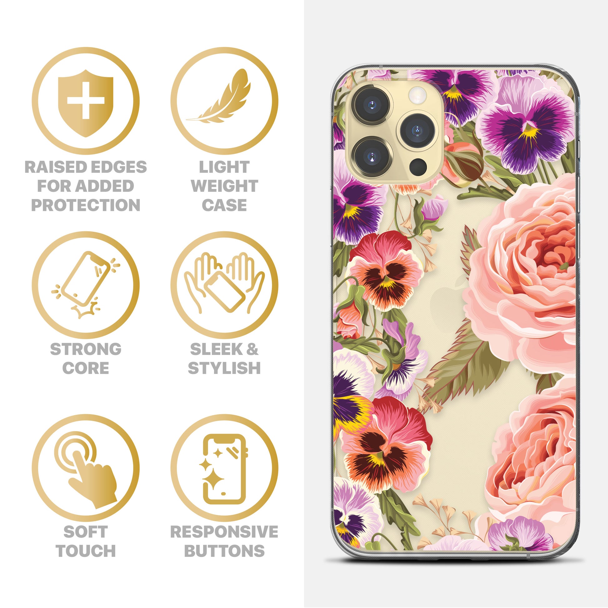 Pansy Garden TPU Clear Phone Case for iPhone & Samsung Phones