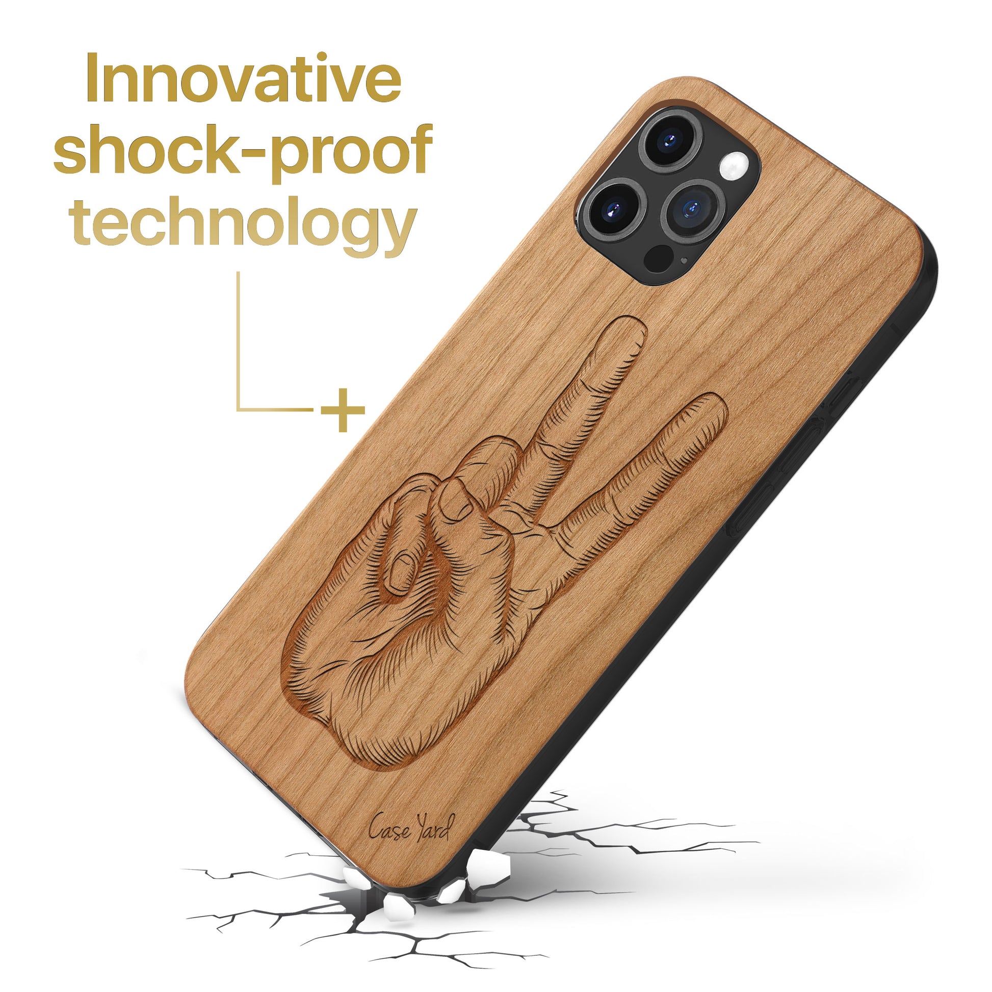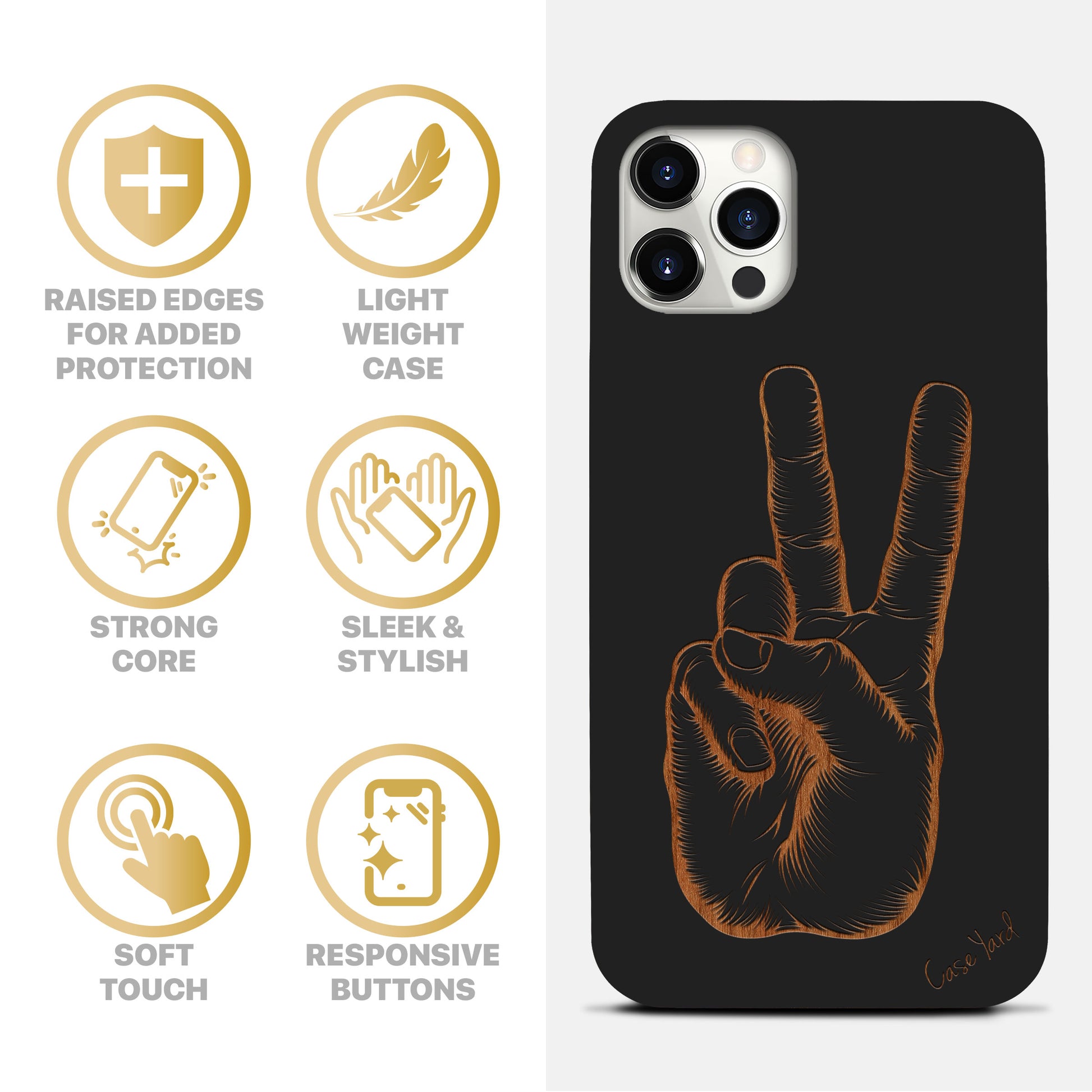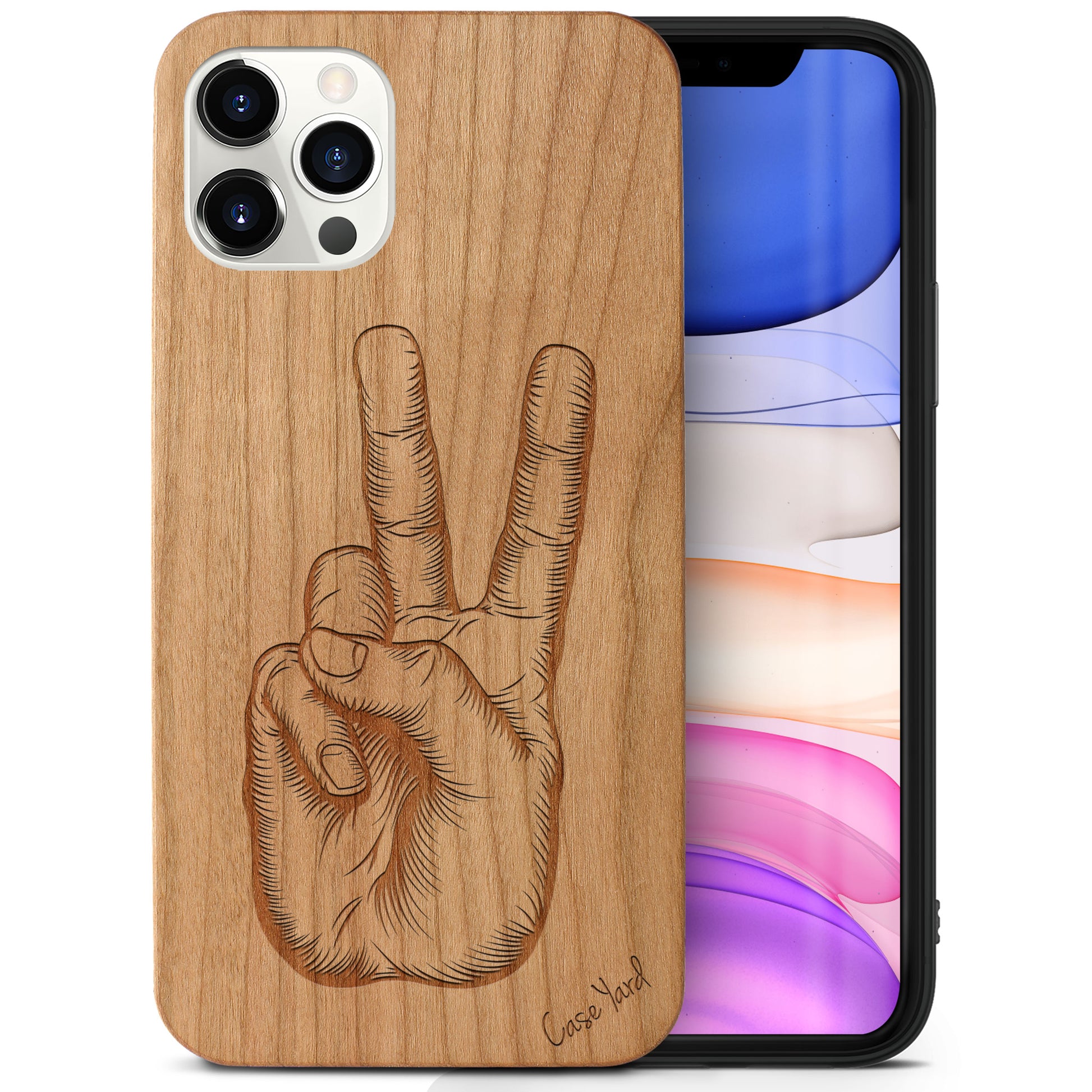 Peace Hand Sign Wooden Laser Engraved Phone Case for iPhone