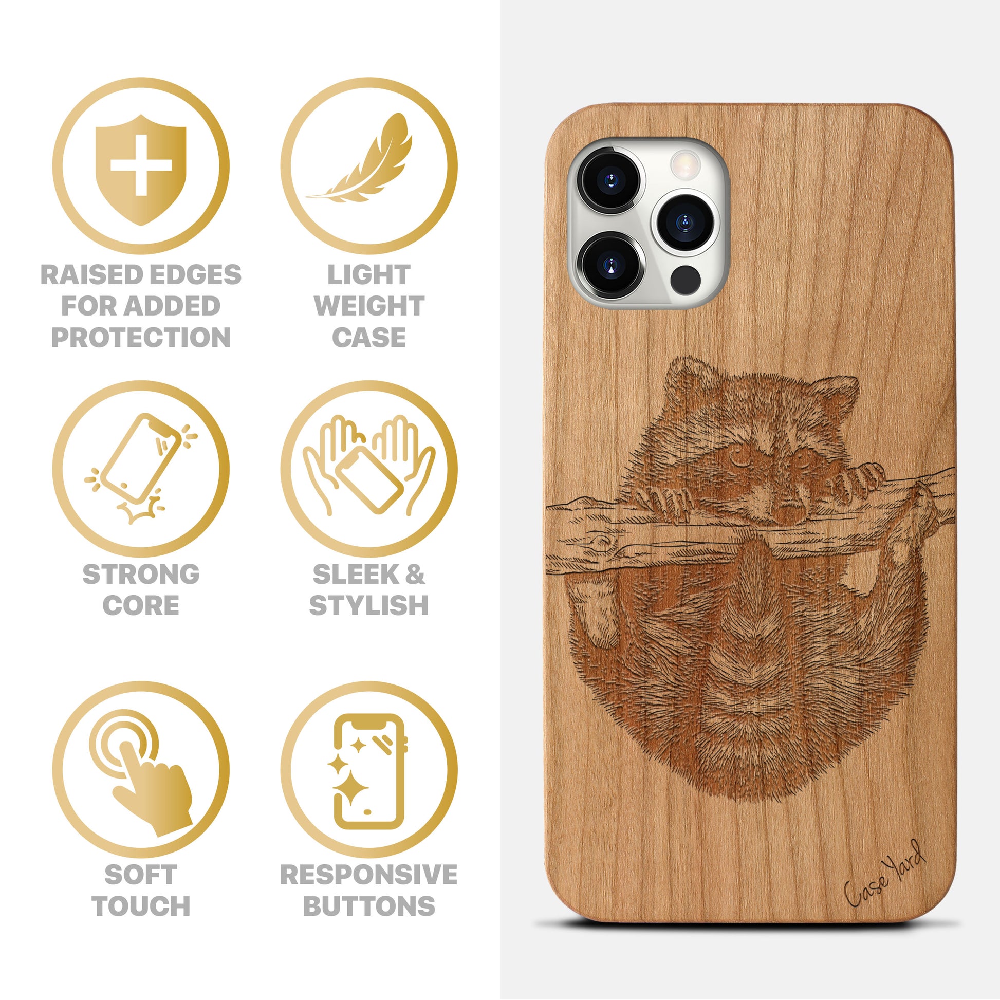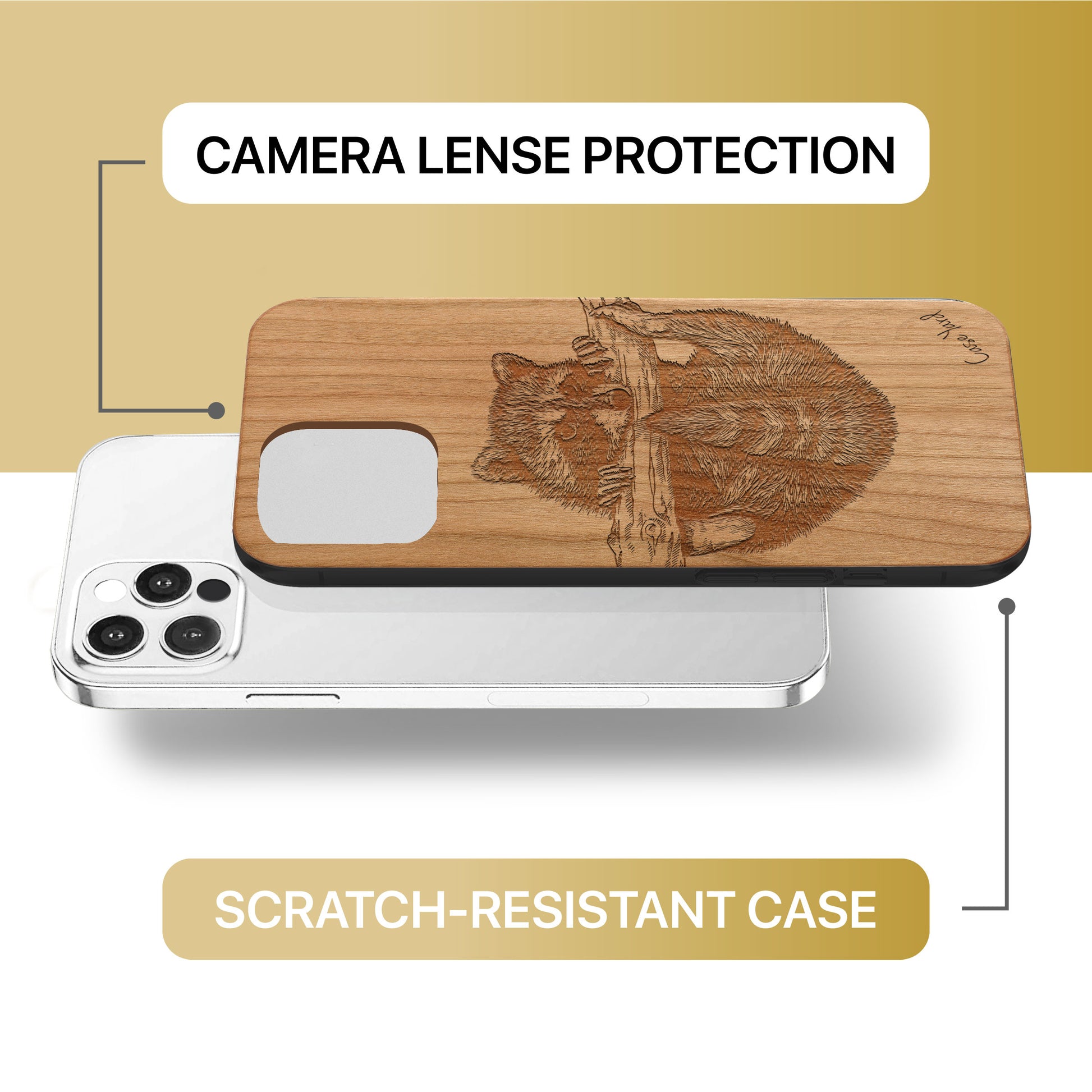 Raccoon Wooden Laser Engraved Phone Case for iPhone