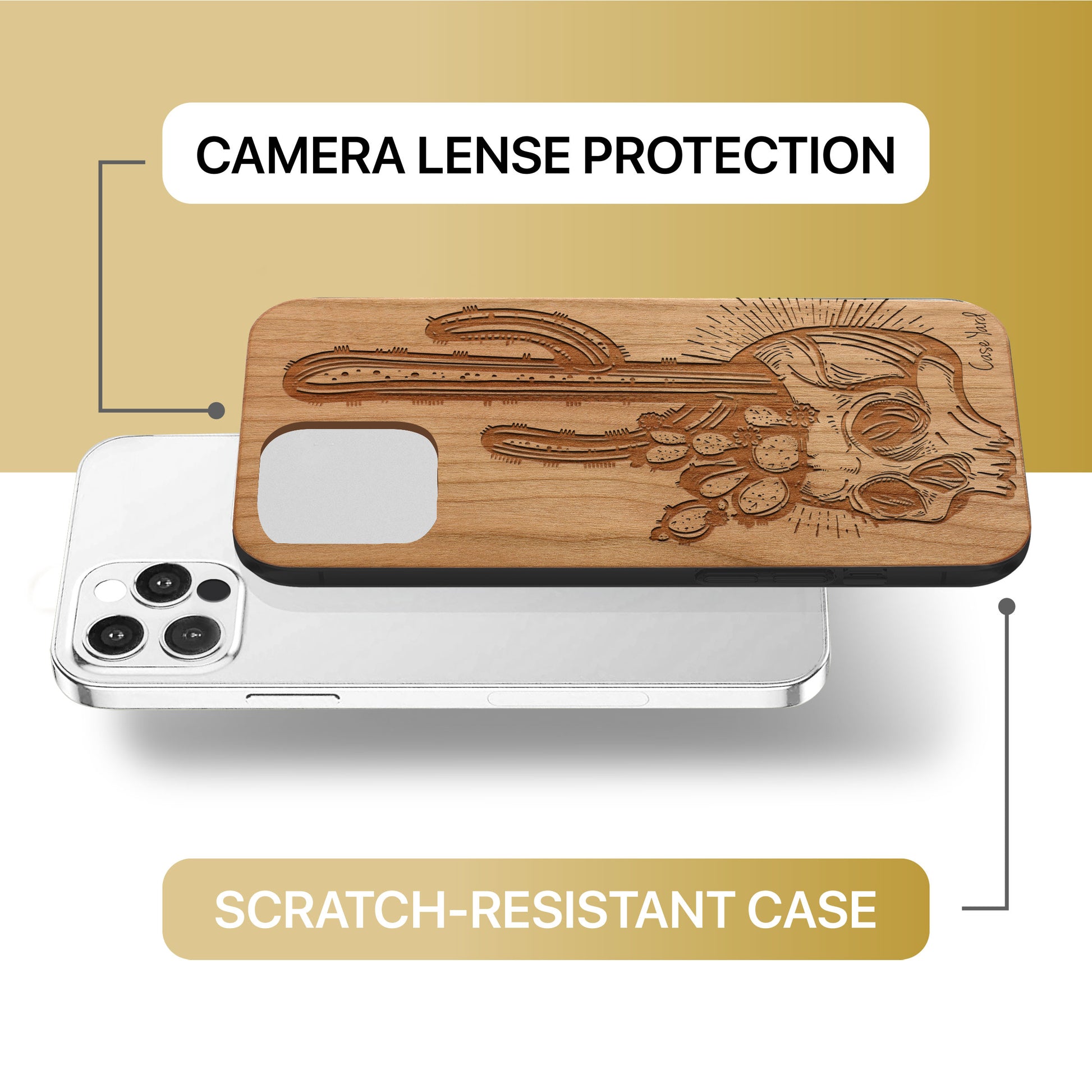 Skull with Cactus Wooden Laser Engraved Phone Case for iPhone
