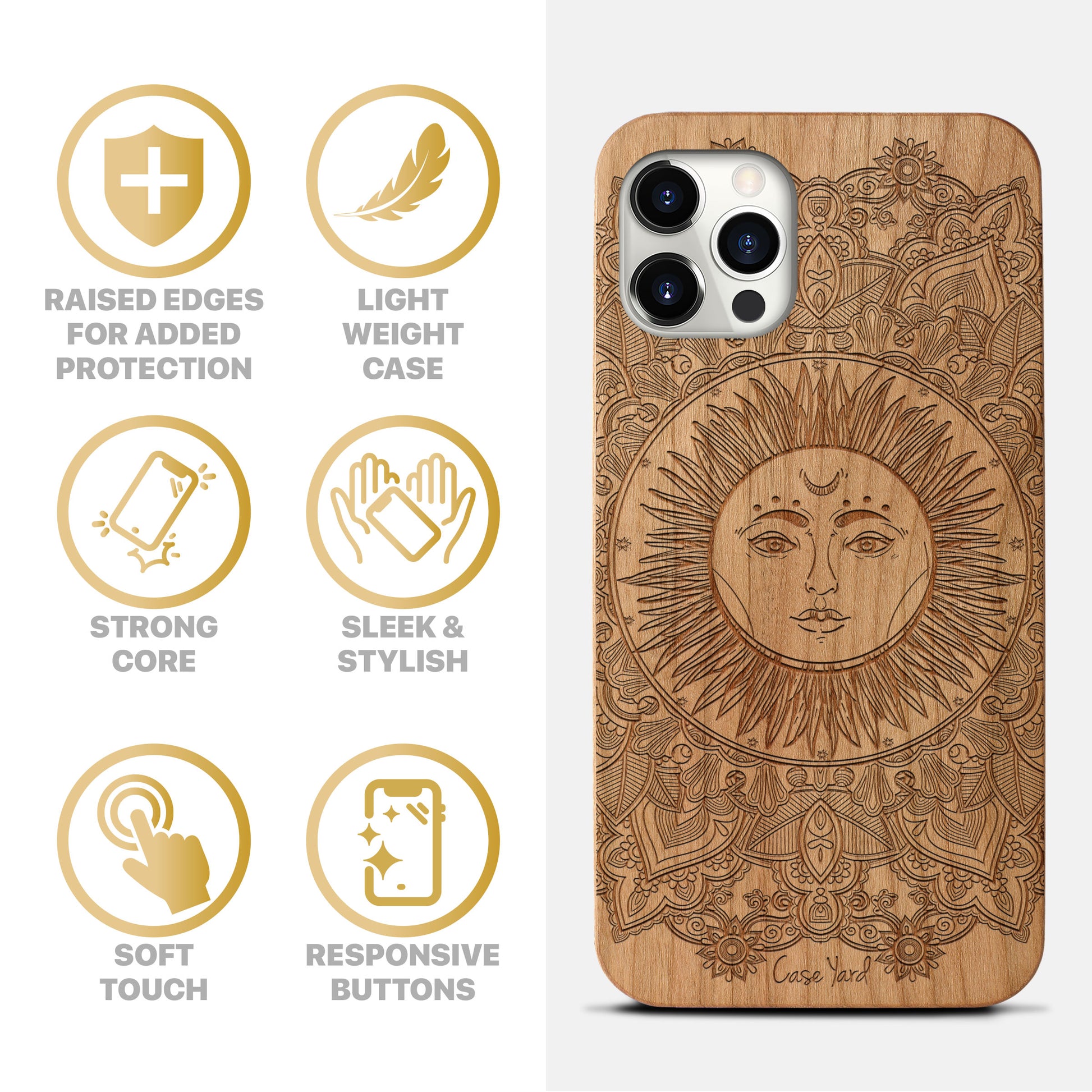 Sun Mandala Wooden Laser Engraved Phone Case for iPhone
