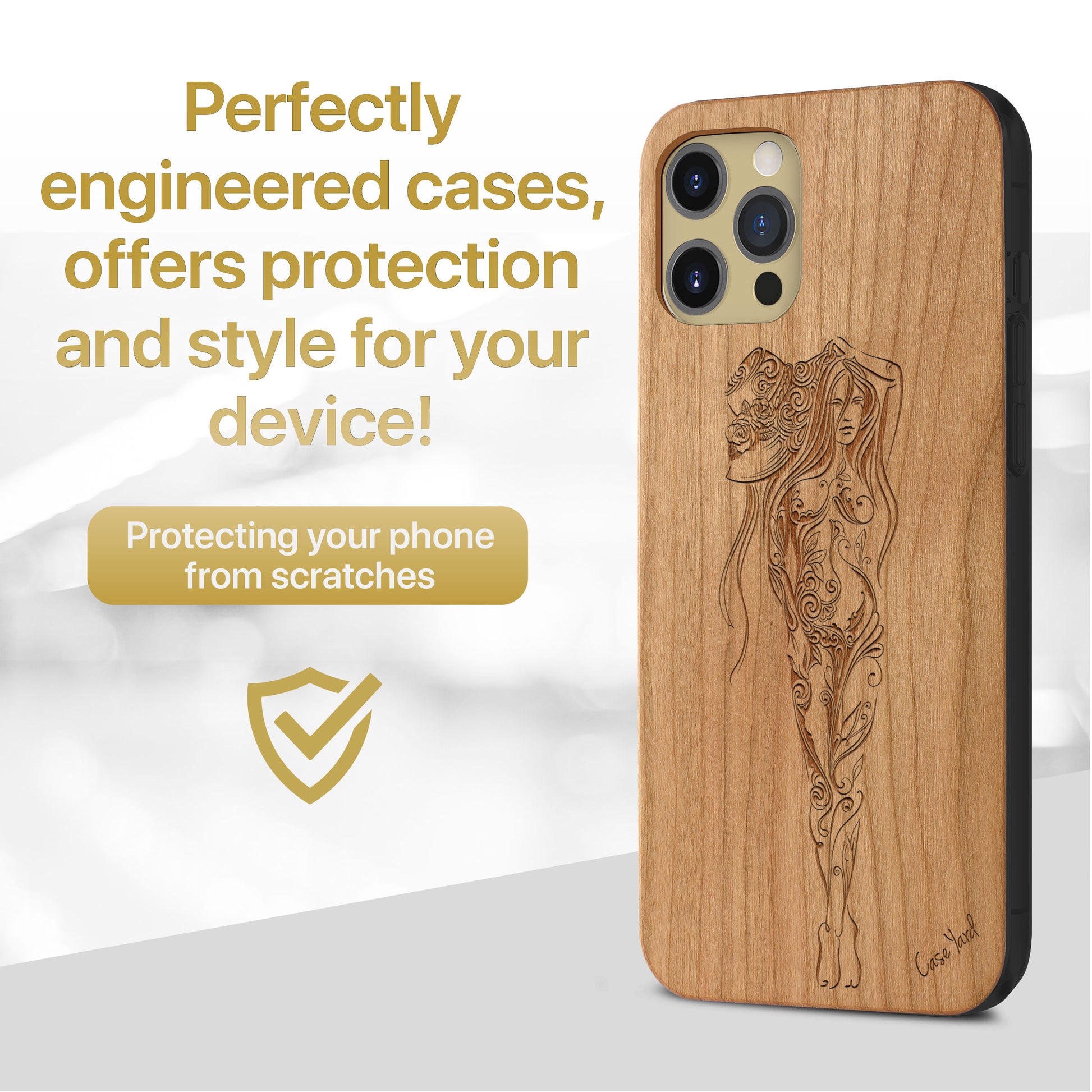 Our wood cases are made of 100% natural real cherry wood. The case housing is made of high-quality polycarbonate to offer protection and a better grip for your device. All cases are engineered to protect your device against accidental drops or knocks.