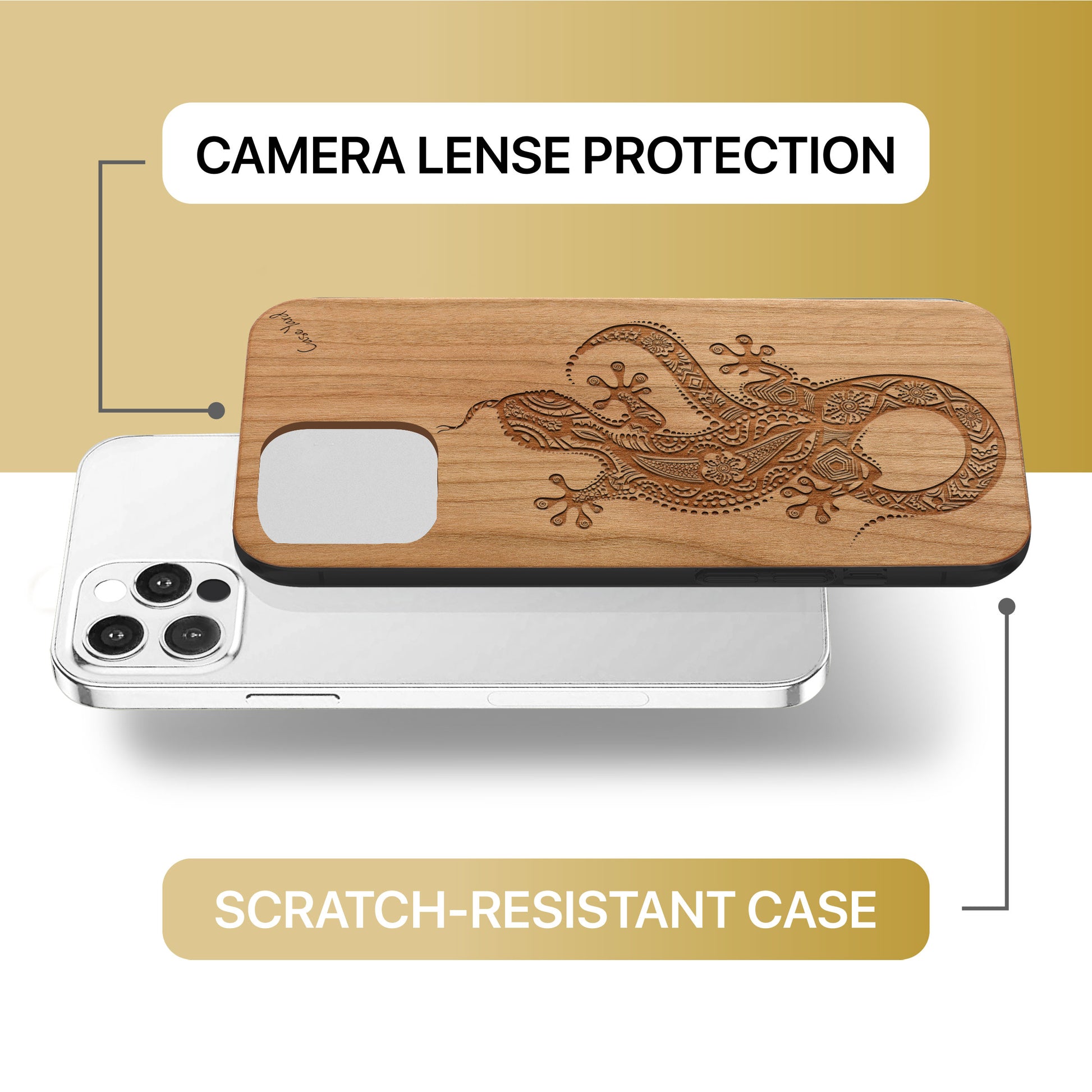 Tribal Lizard Wooden Laser Engraved Phone Case for iPhone