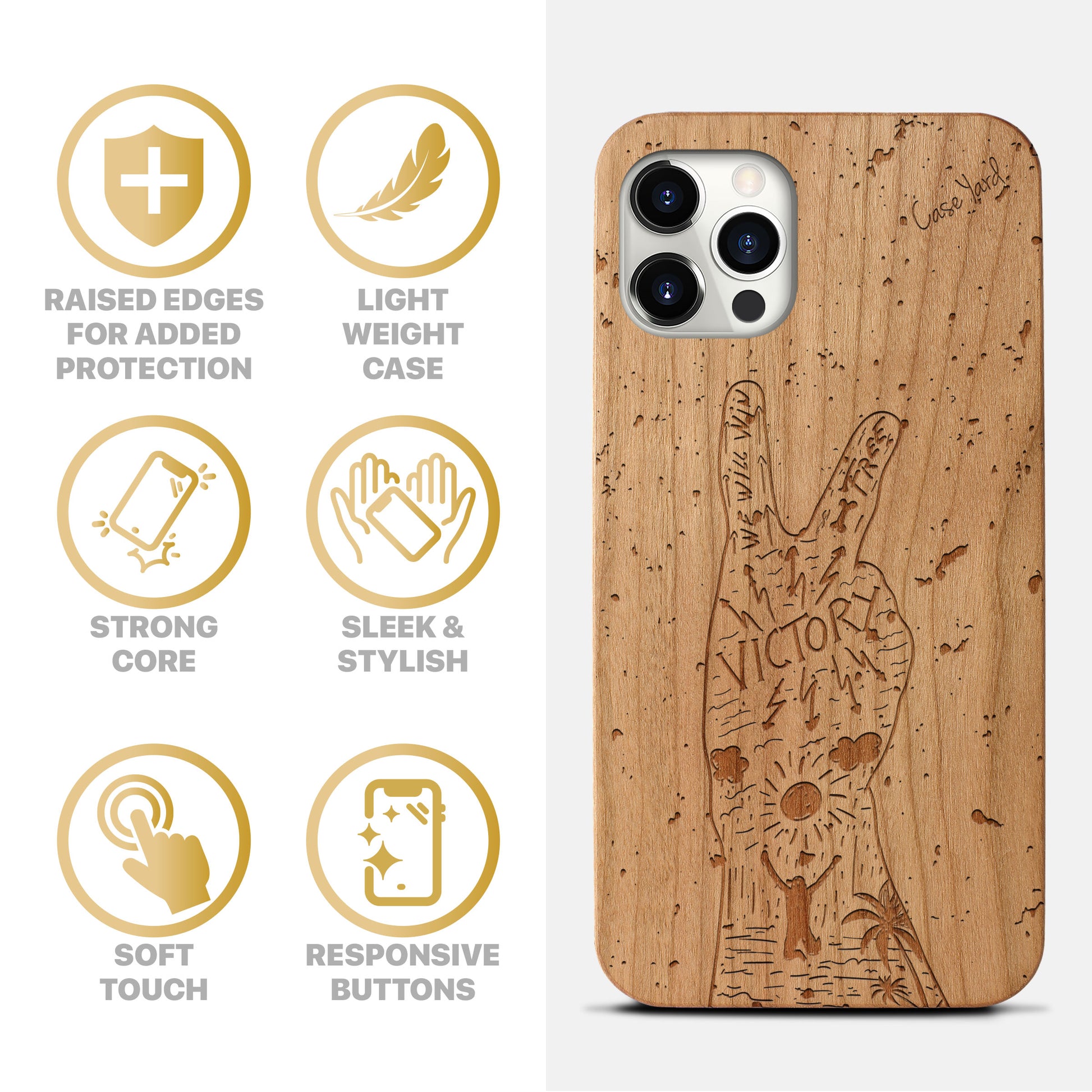 Victory Wooden Laser Engraved Phone Case for iPhone