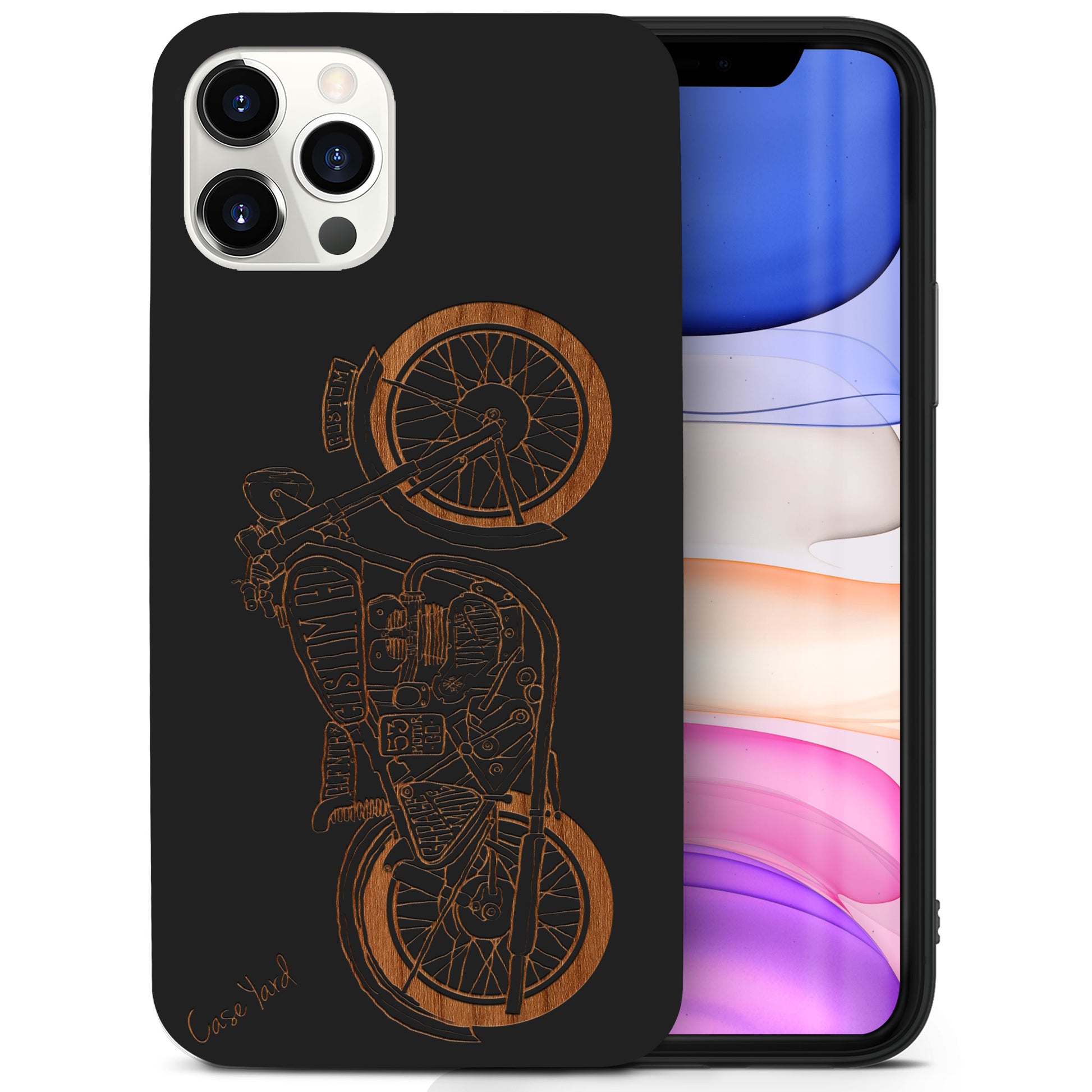 Vintage Motorcycle Wooden Laser Engraved Phone Case for iPhone