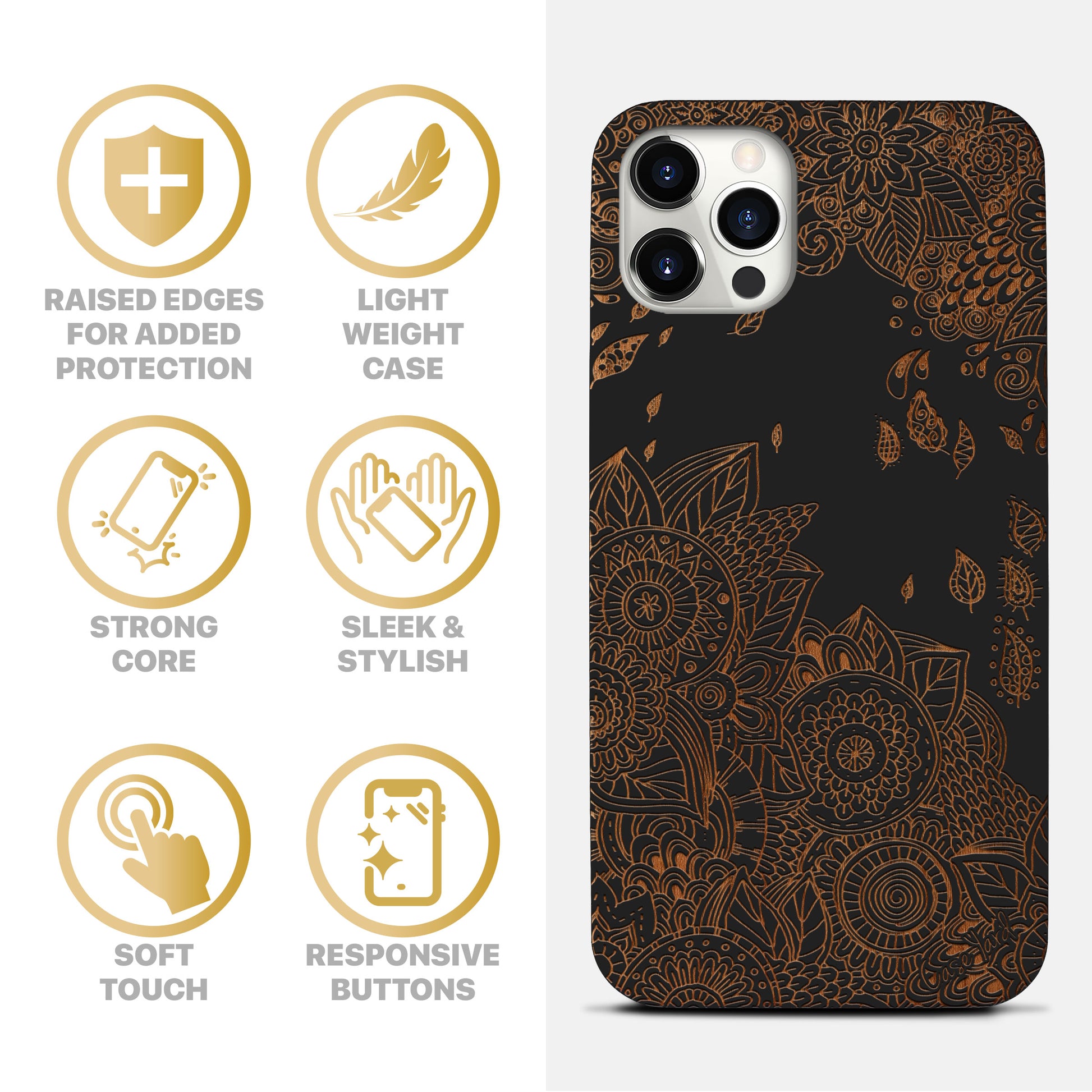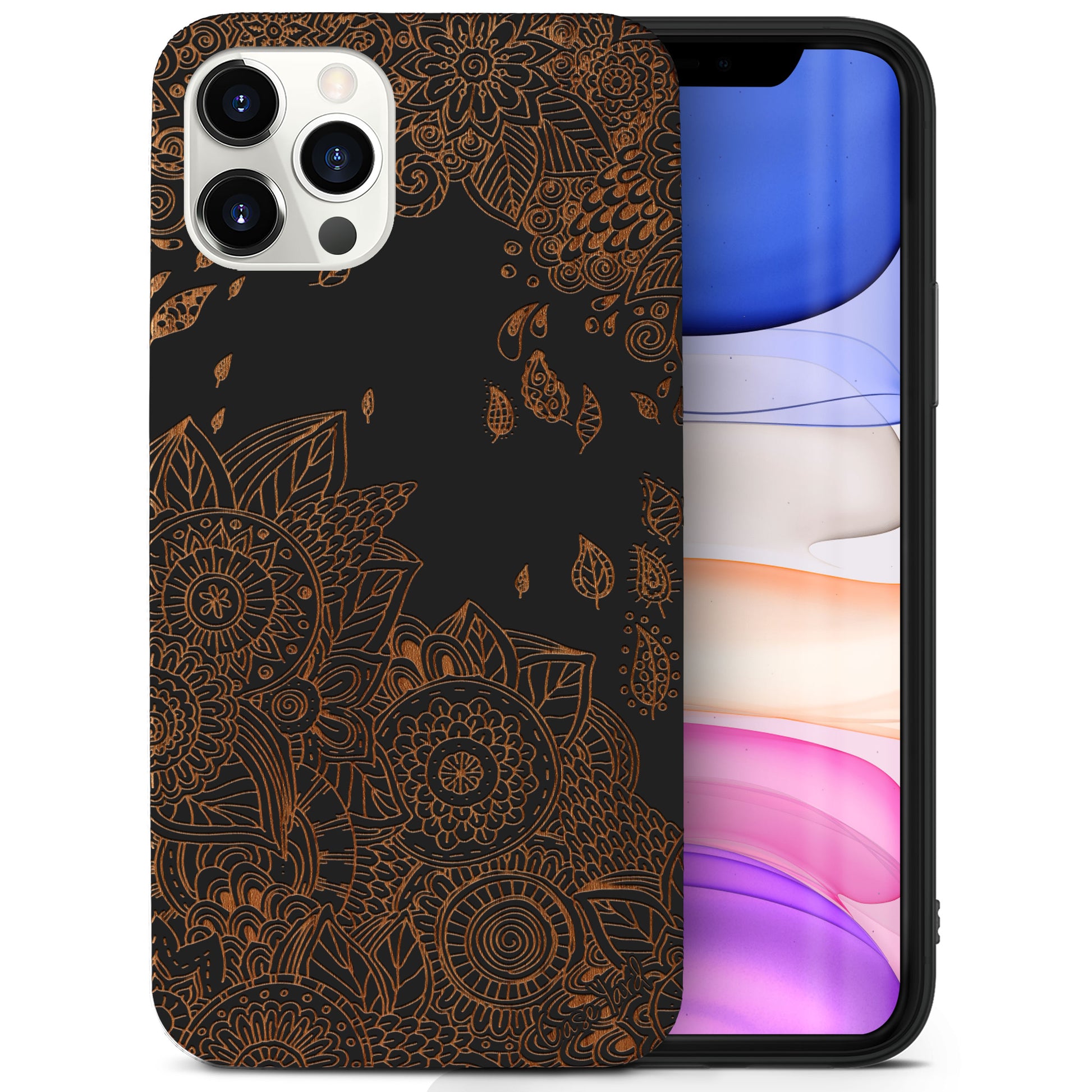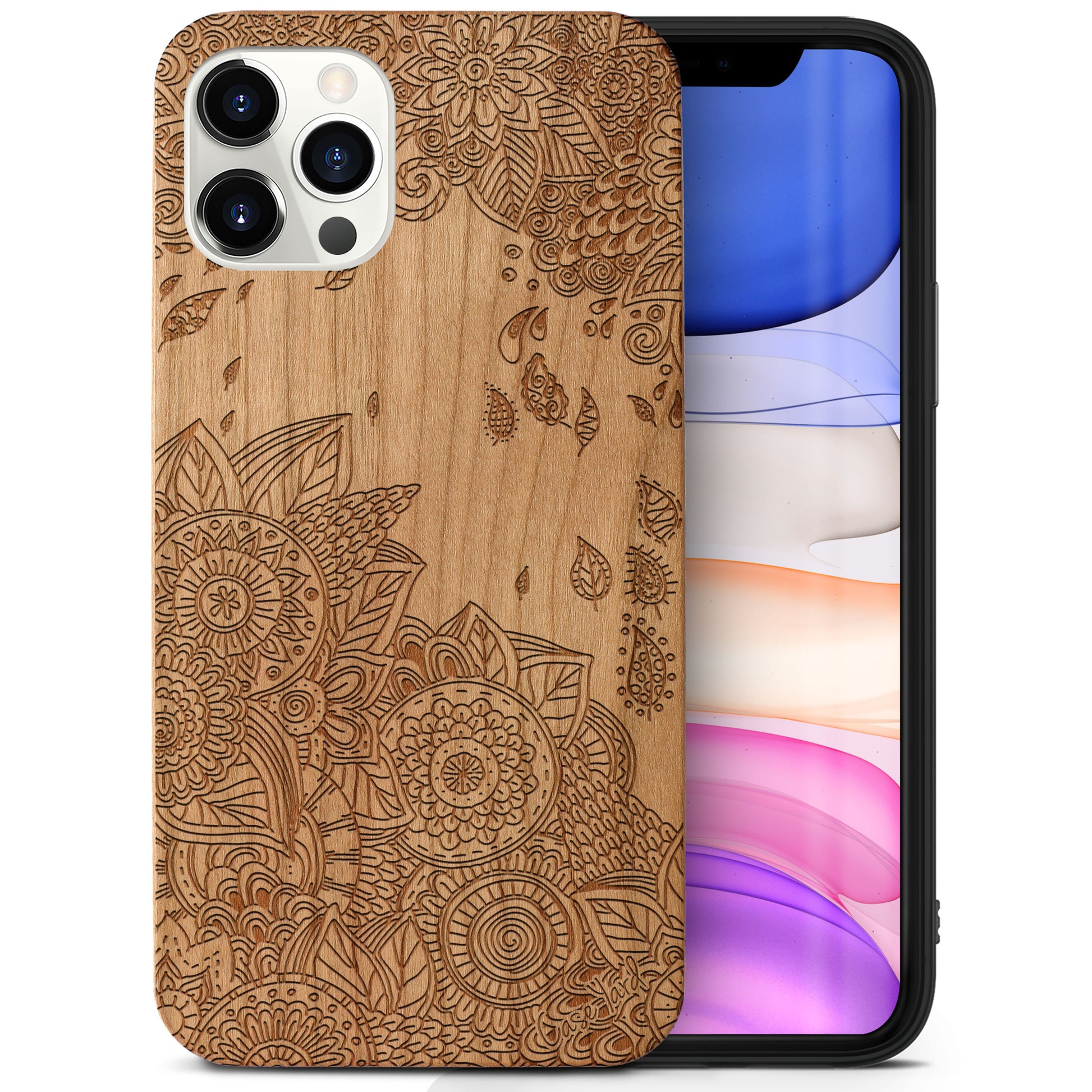 Wind Flowers Wood Wooden Laser Engraved Phone Case
