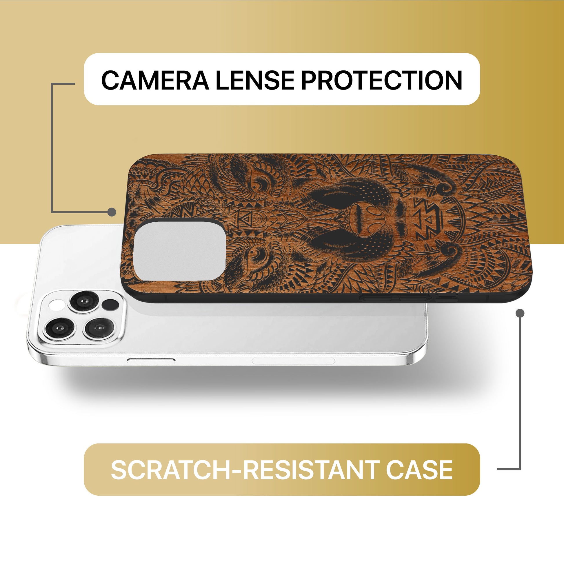 Wolf Face Full Wooden Laser Engraved Phone Case for iPhone